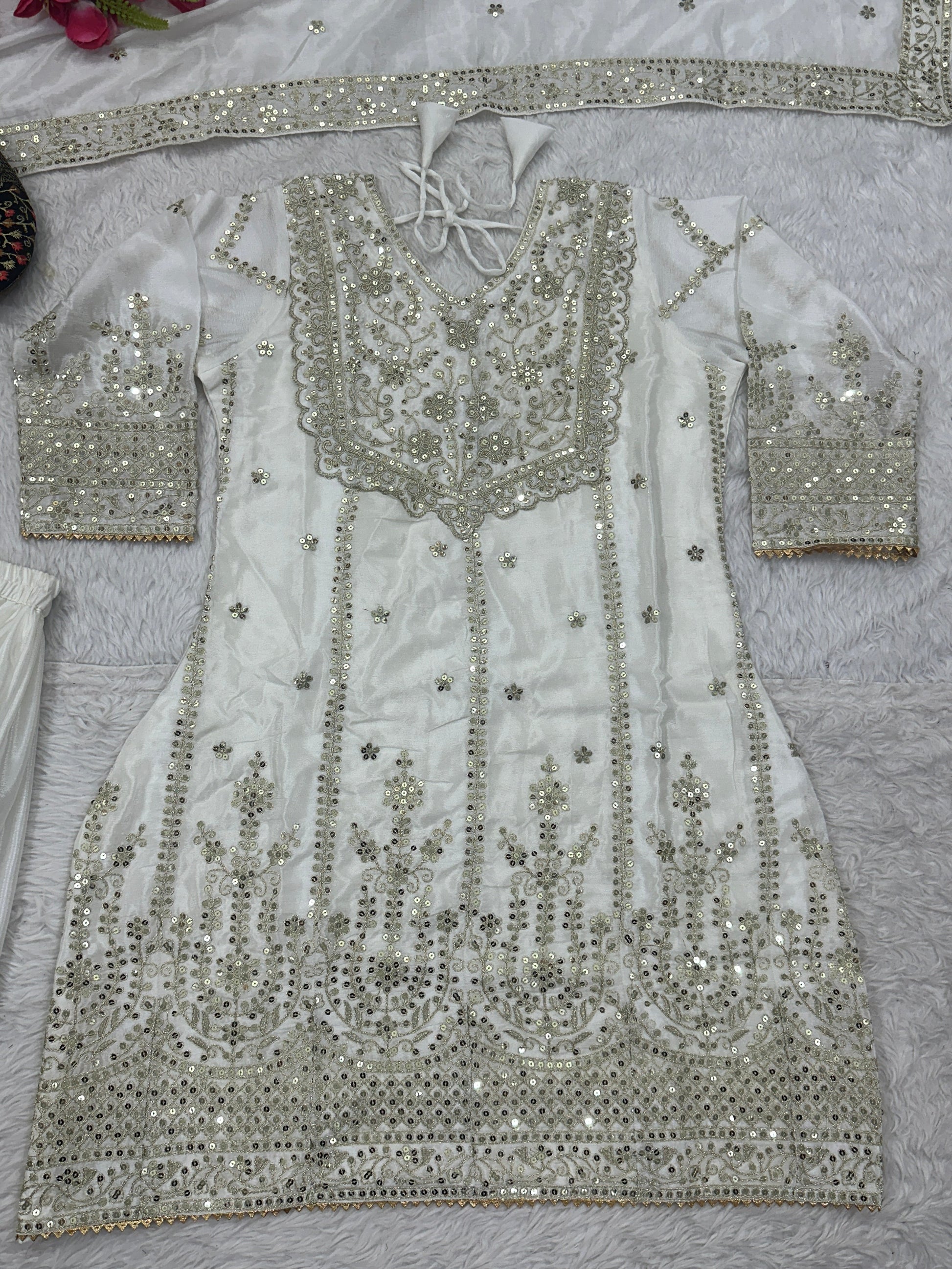 *Top Fabric* :Heavy Chinon silk With Heavy 5mm Embroidery Sequence Coding Work With Full Sleeve