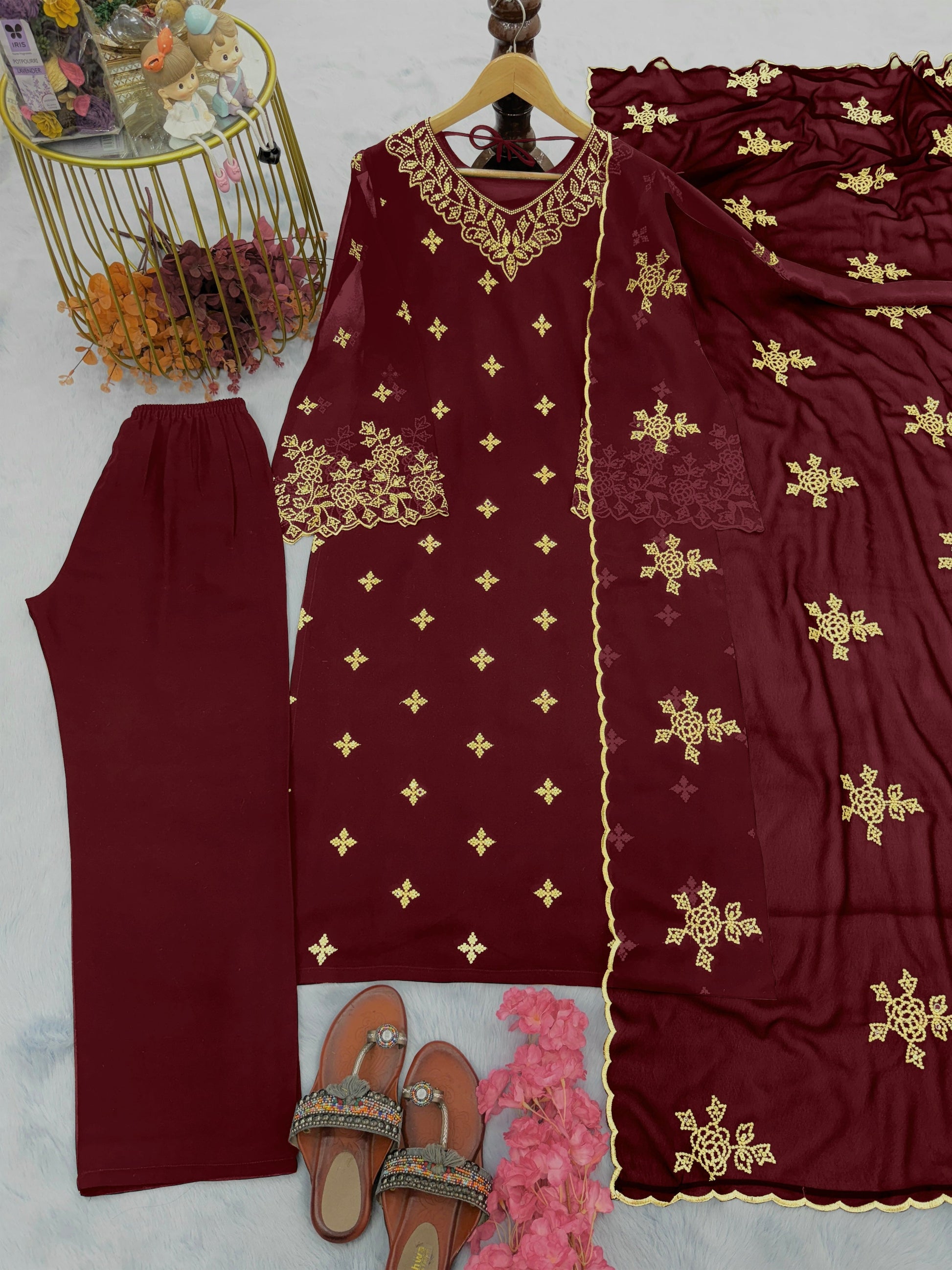 *Launching New Designer Party Wear Look Foux Georgette Top Plazzo & Dupatta Set*