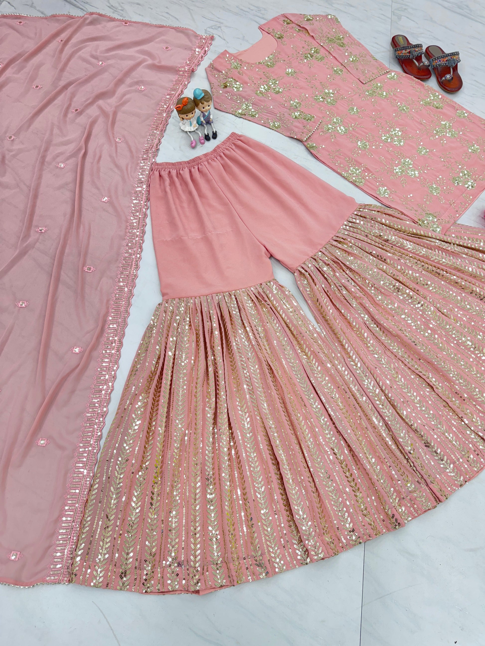 *Sarara Plazzo Fabric*: Heavy Faux Georgette With Heavy Embroidery 5 mm Sequence Work
