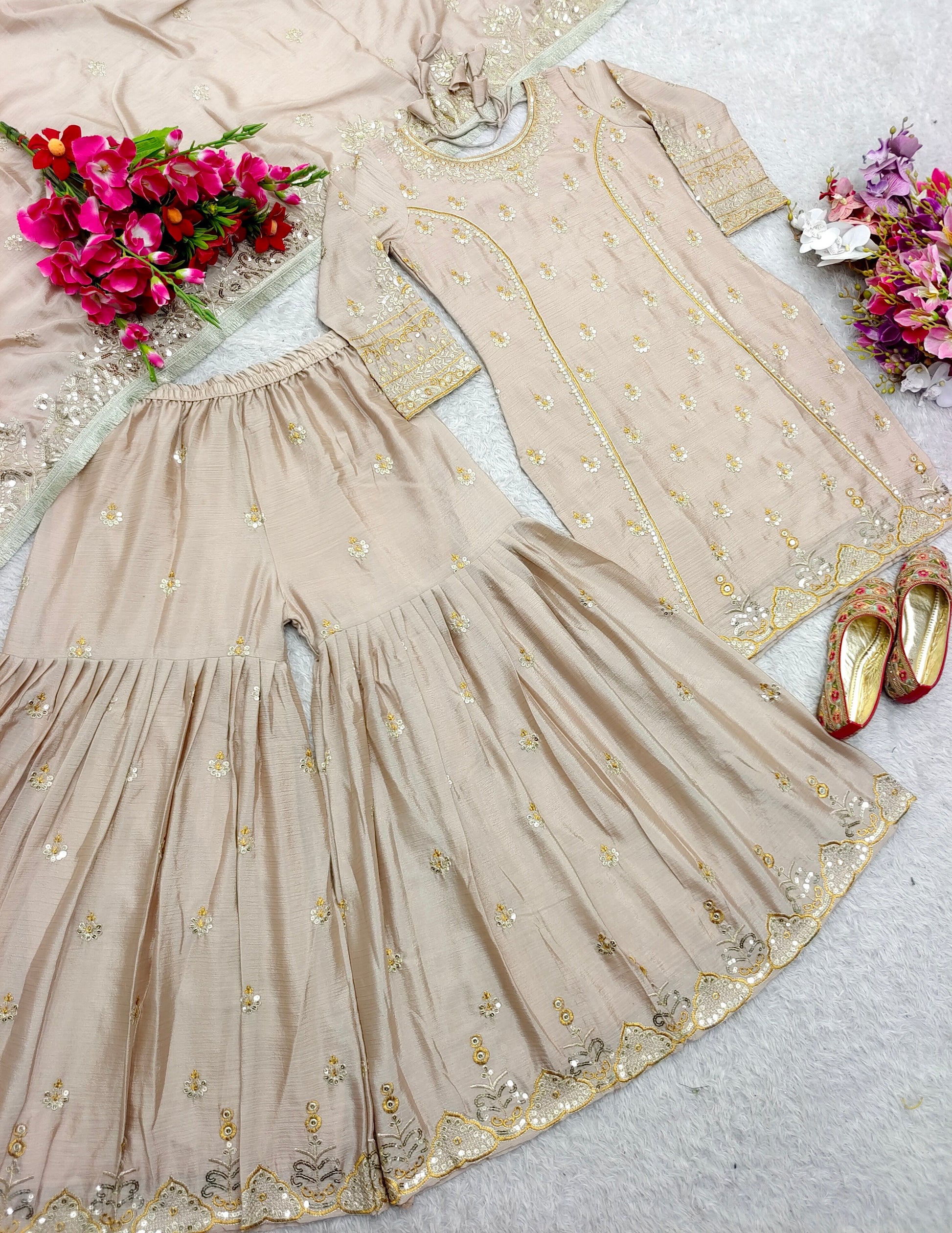 Presenting New Cinon Top-Sarara and Dupatta Set Fully Stitched Ready To Wear