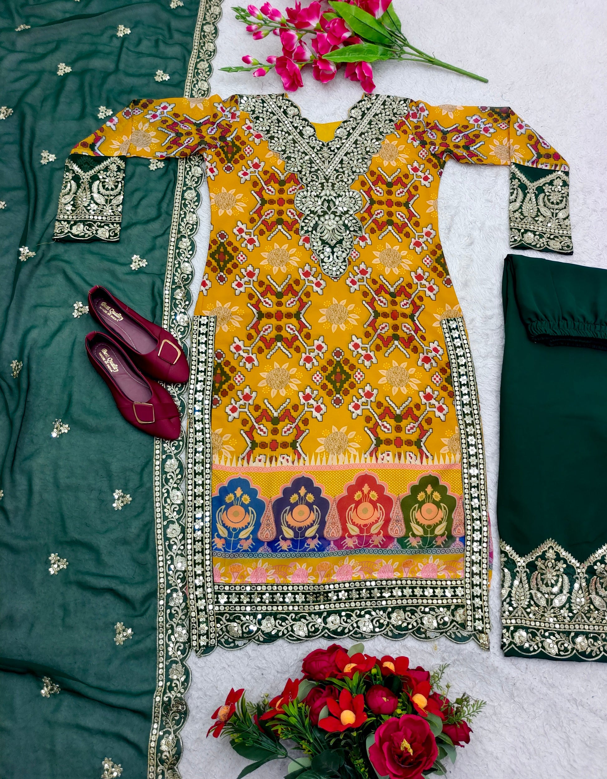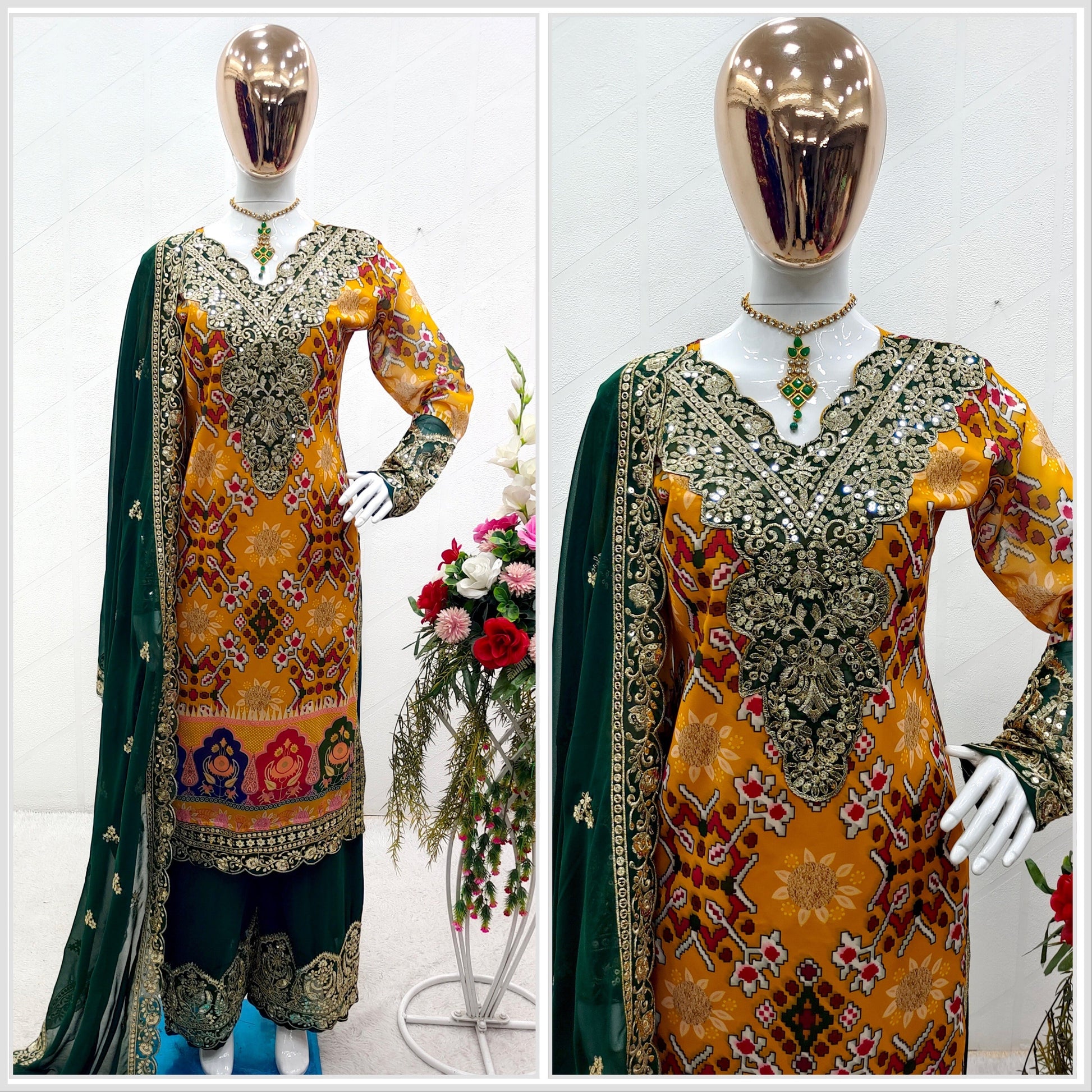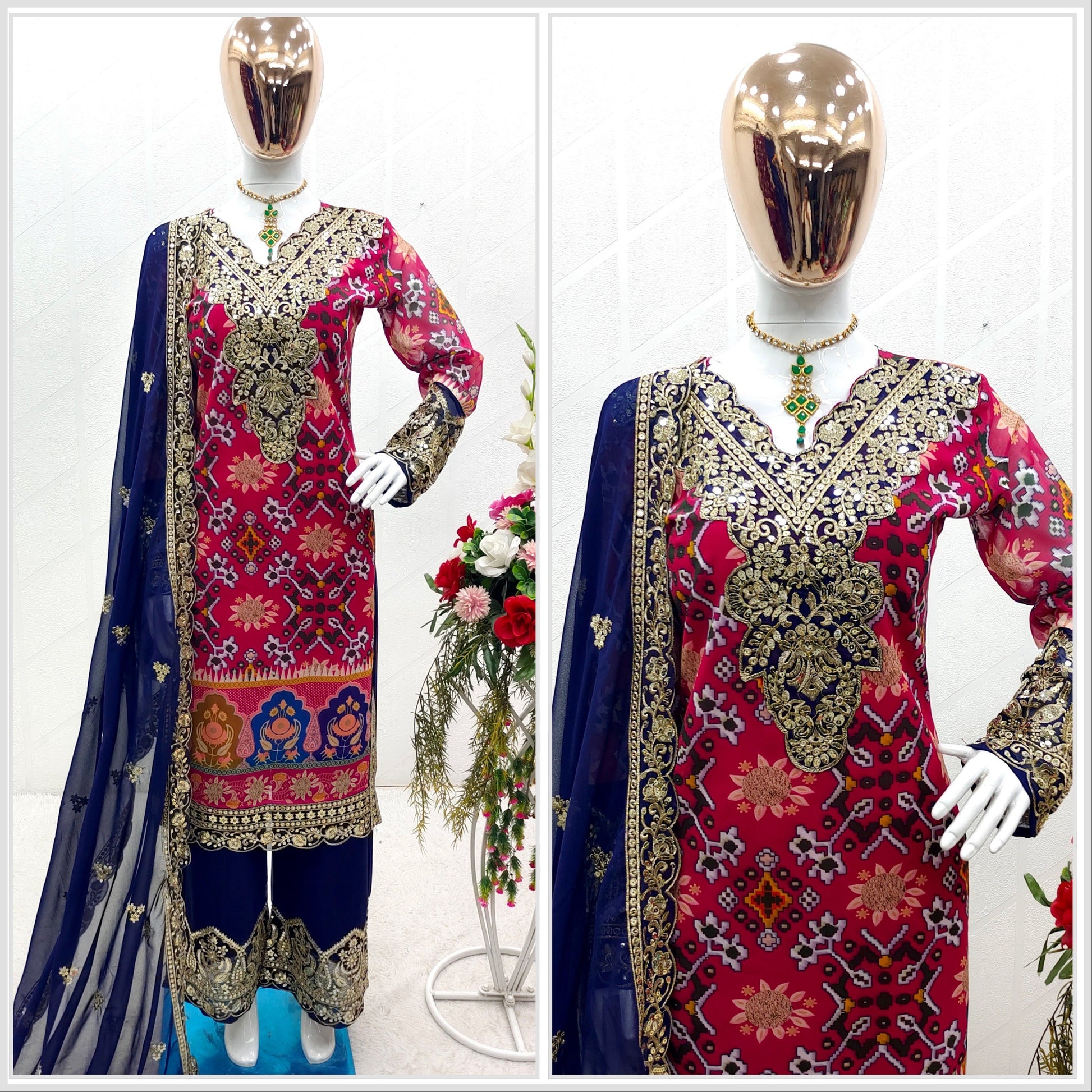 *Top Fabric* : Heavy Pure Fox Georgette With Dijital Print With 5mm Siqwans Embroidery Work With Full-Sleevs With Fency Less-Work