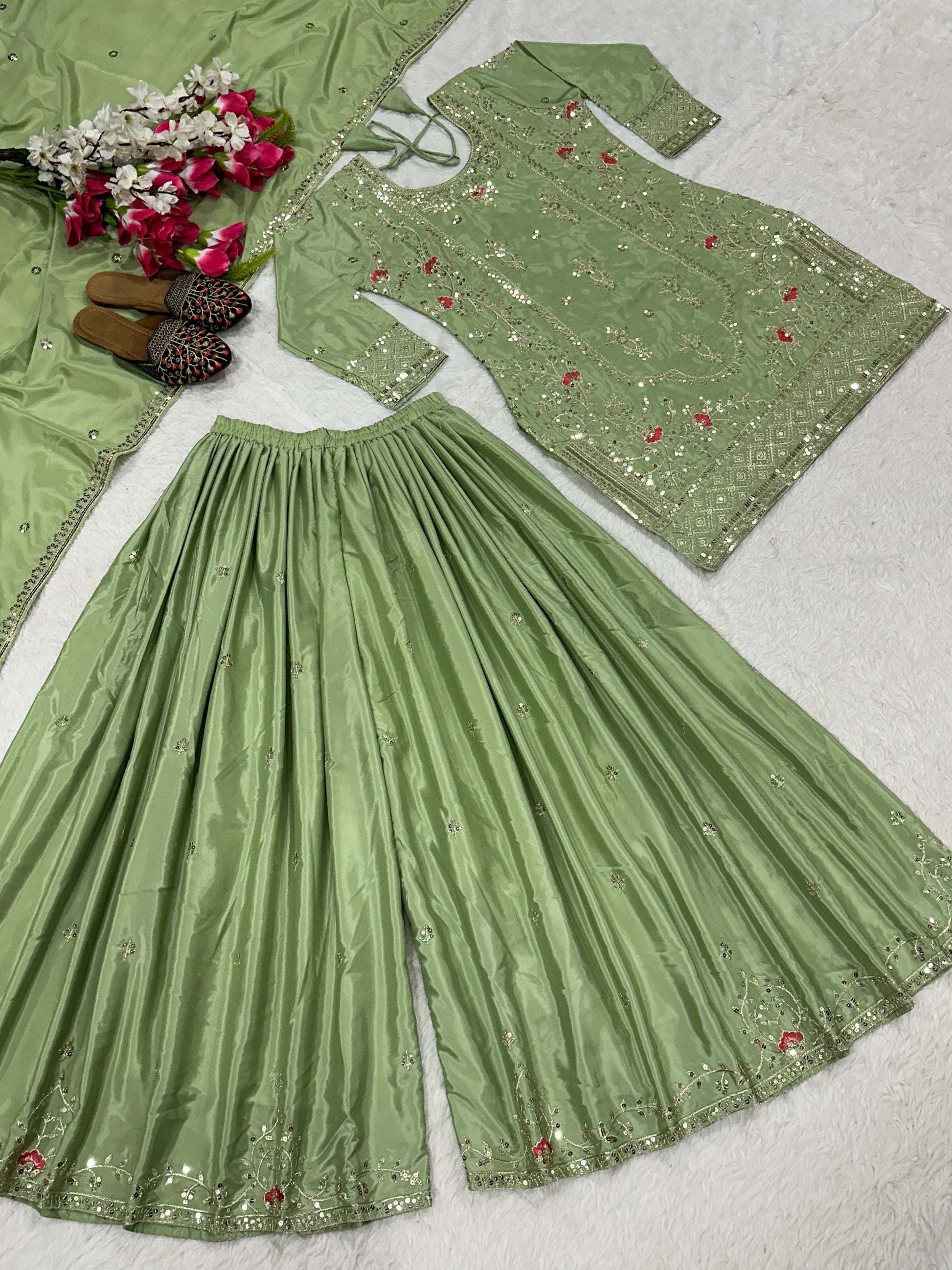 *Sharara Palazzo* : Natural Crep With 5mm Sequence Embroidery Work.