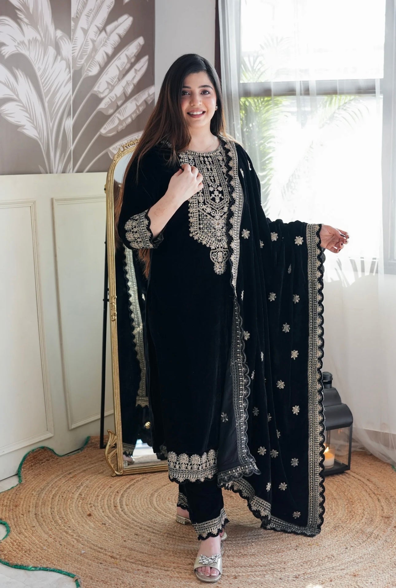 Presenting New Velvet Top -Pent Dupatta Set Fully Stitched Ready To Wear