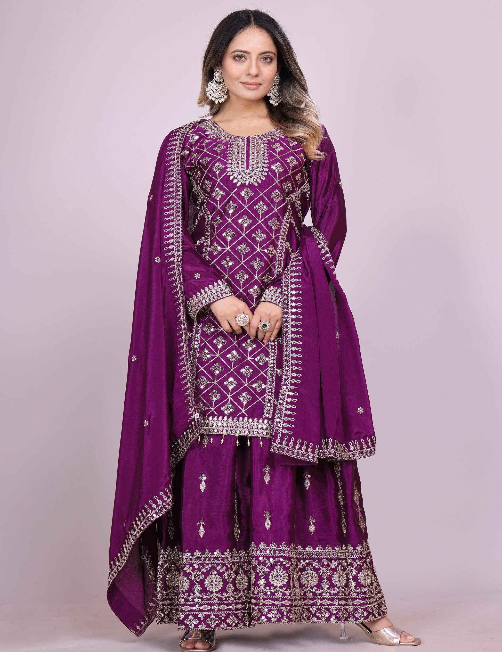 Presenting New Designer Embroidered Chinon Sharara Suit With Coding Sequence Embroidered Work