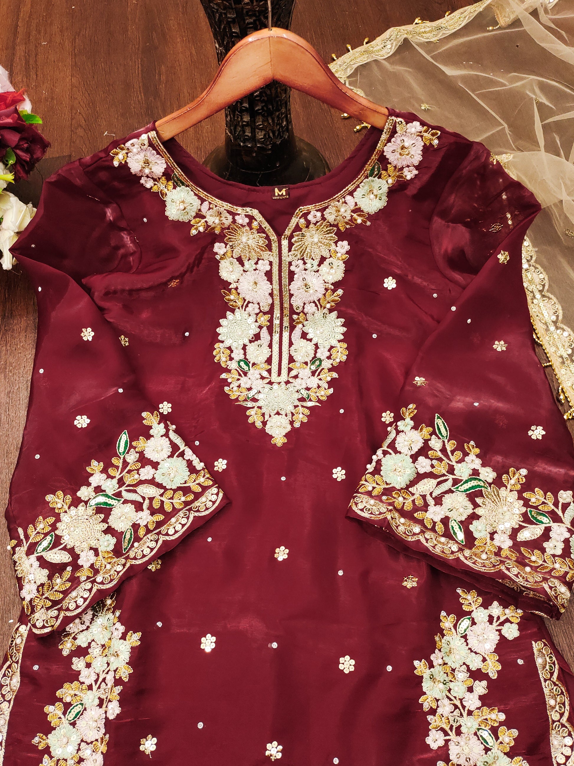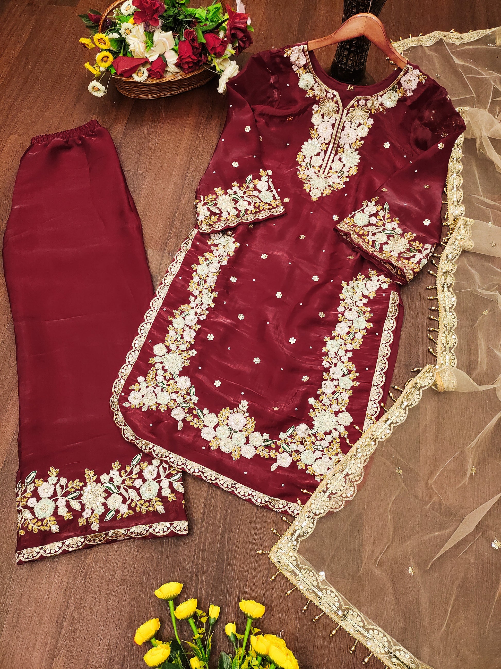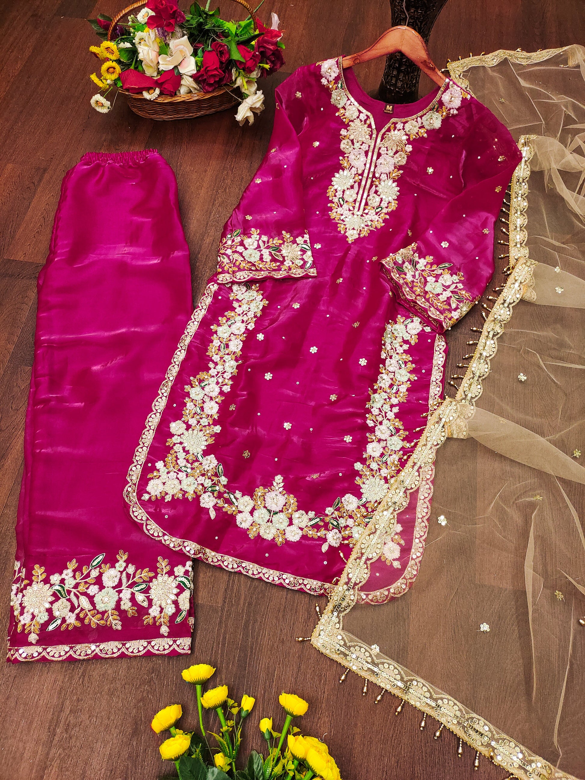 Designer Party Wear Suit Set With Sequence Embroidered Work