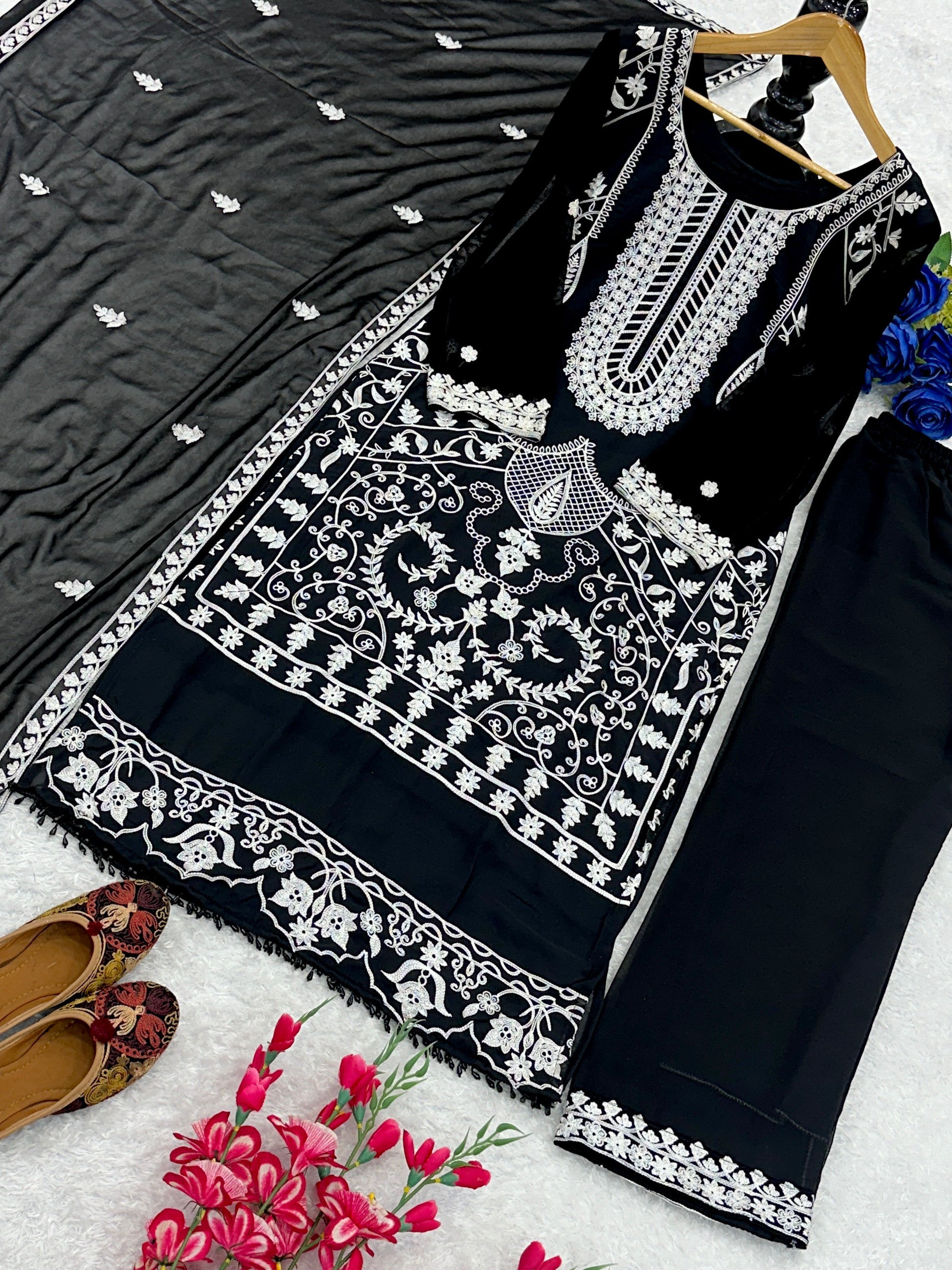 *VLMLUNCHING NEW DESIGNER PARTY WEAR TOP AND PLAZZO WITH FANCY DUPPATA AND EMBROIDERY WORK*