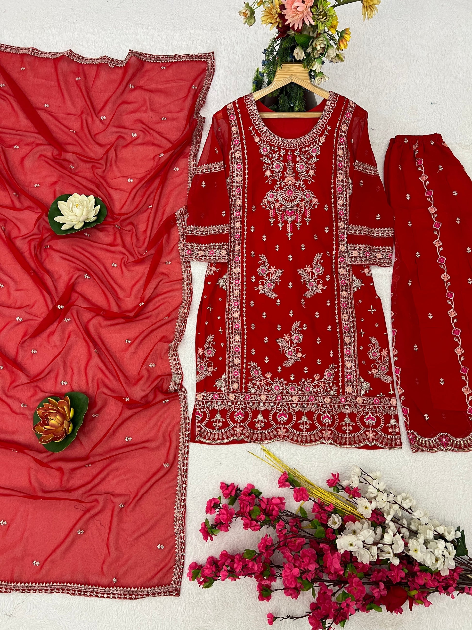 *Dupatta Fabric* :- Heavy Faux gorgette Silk Fabric with Emb Work Lace on Border (dupatta size 2.20 meter)