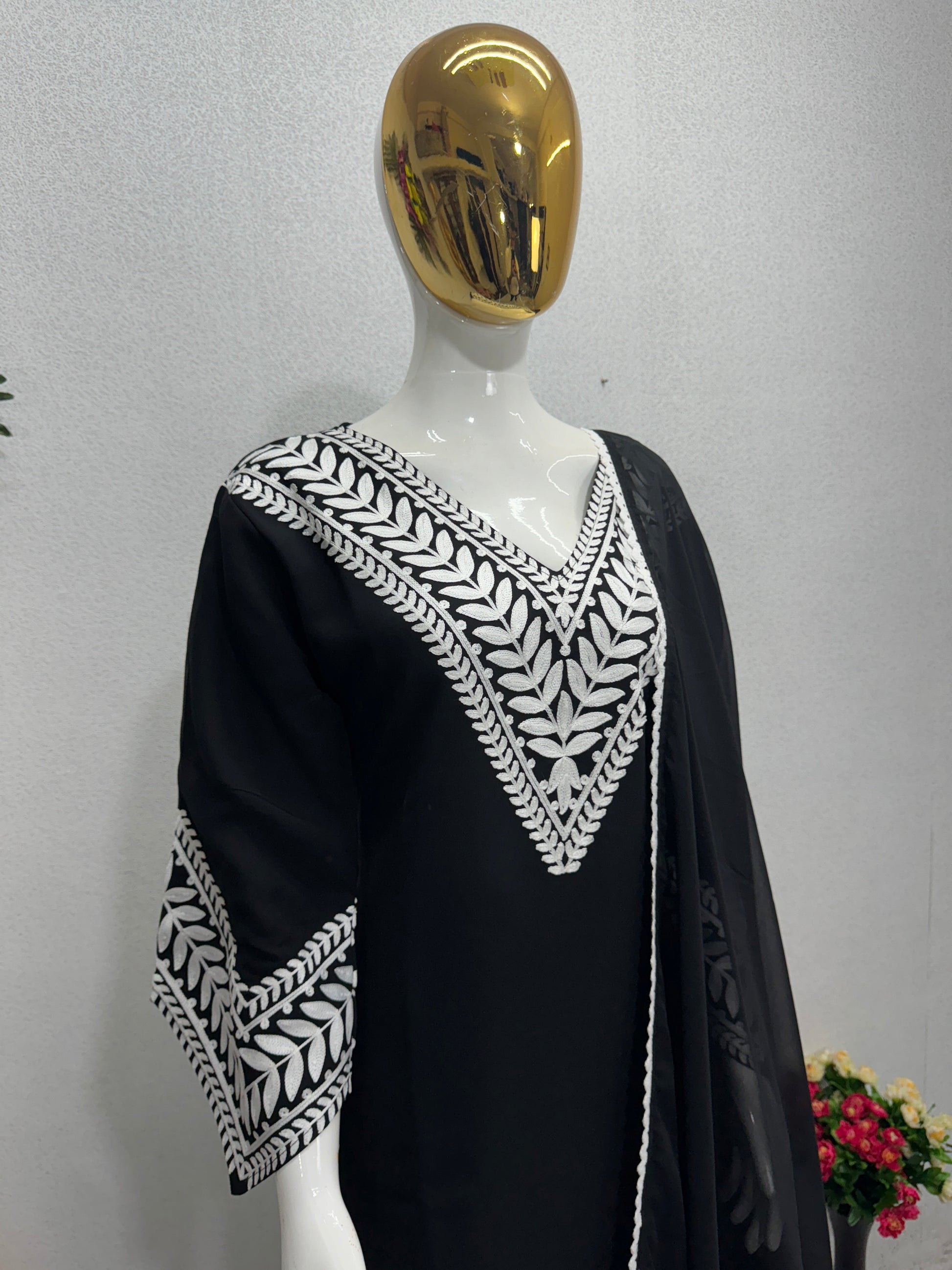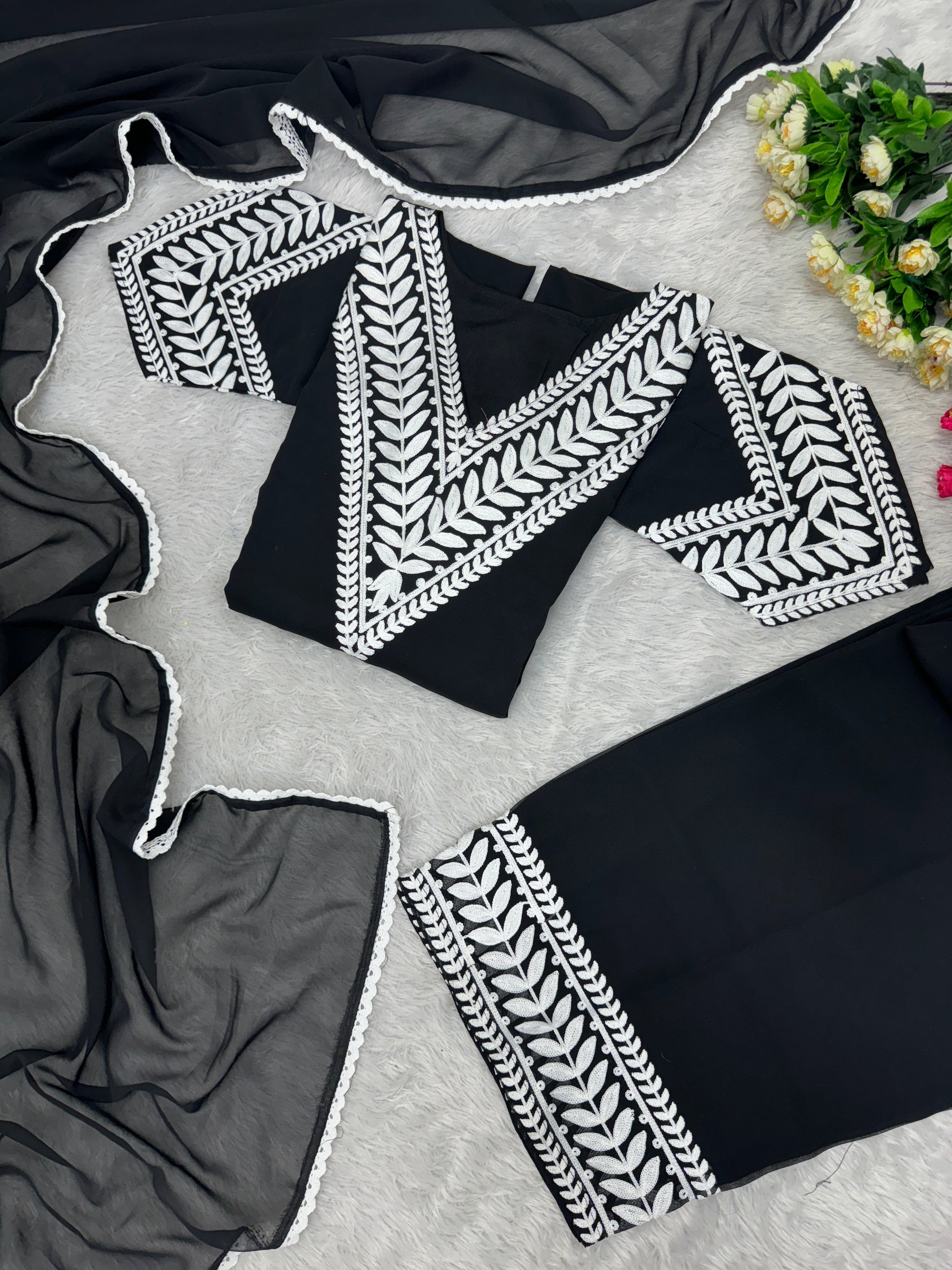 NEW DESIGNER PARTY WEAR TOP WITH FANCY CHINE STITCHED WORK PLAZZO*