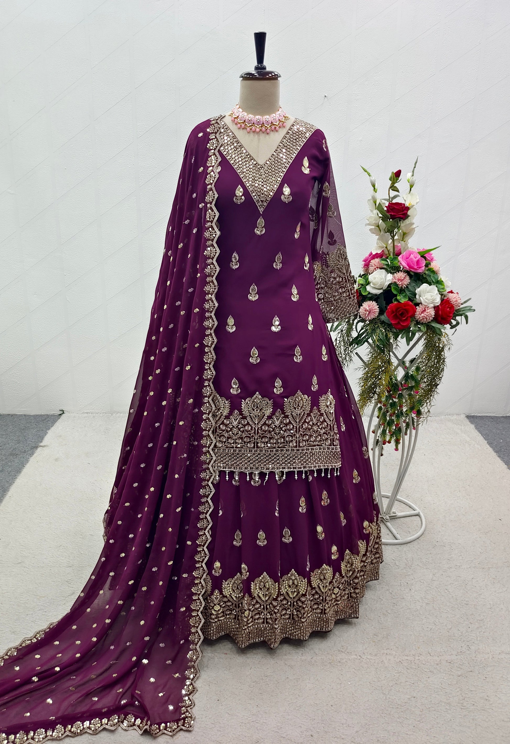 *Dupatta Fabric*: Heavy fox Georgette With 5mm Siqwons Embroidery Work With Full-Stitch