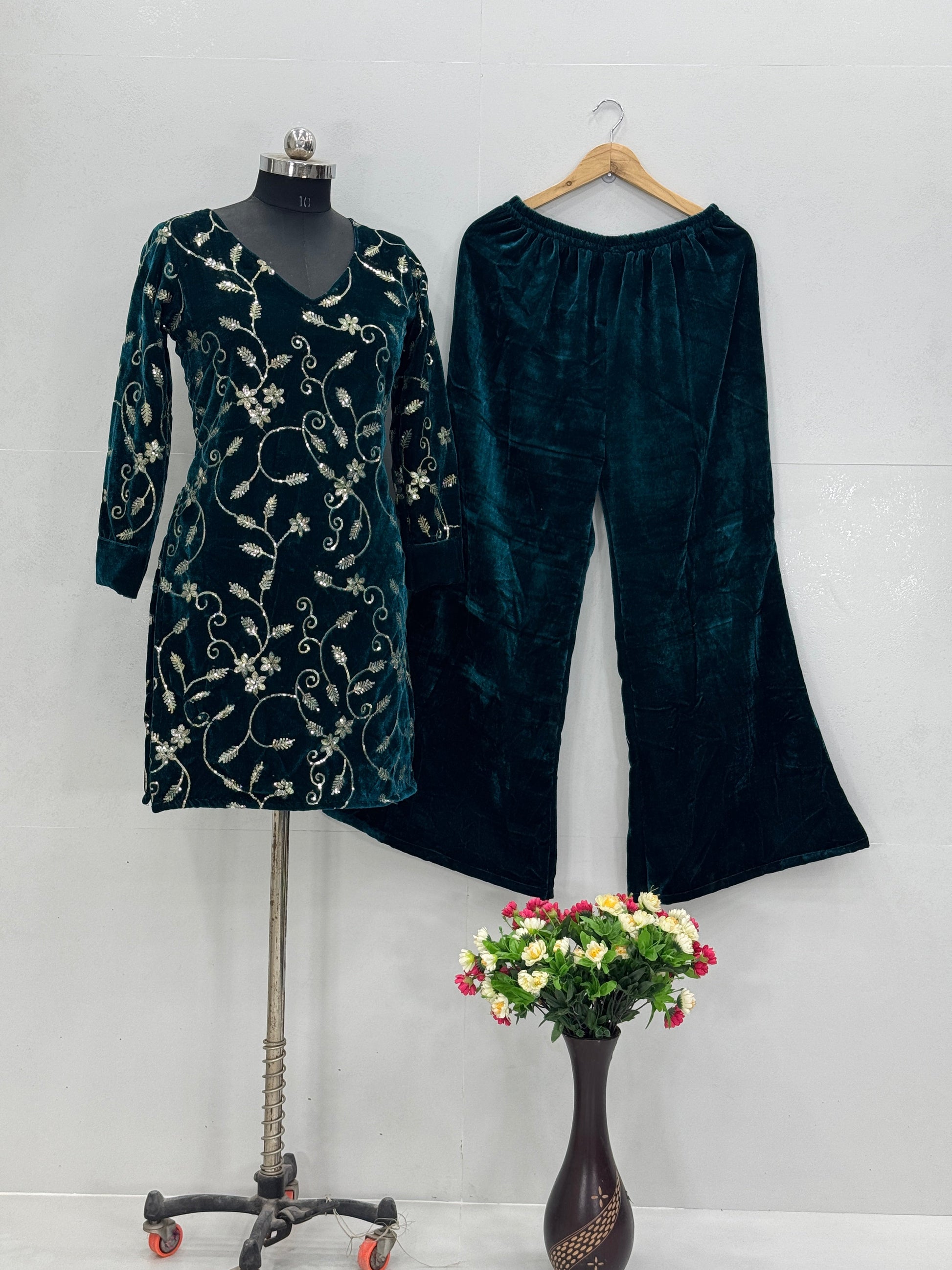 NEW DESIGNER PARTY WEAR HEAVY VISCOSE VELVET TOP WITH PENT*
