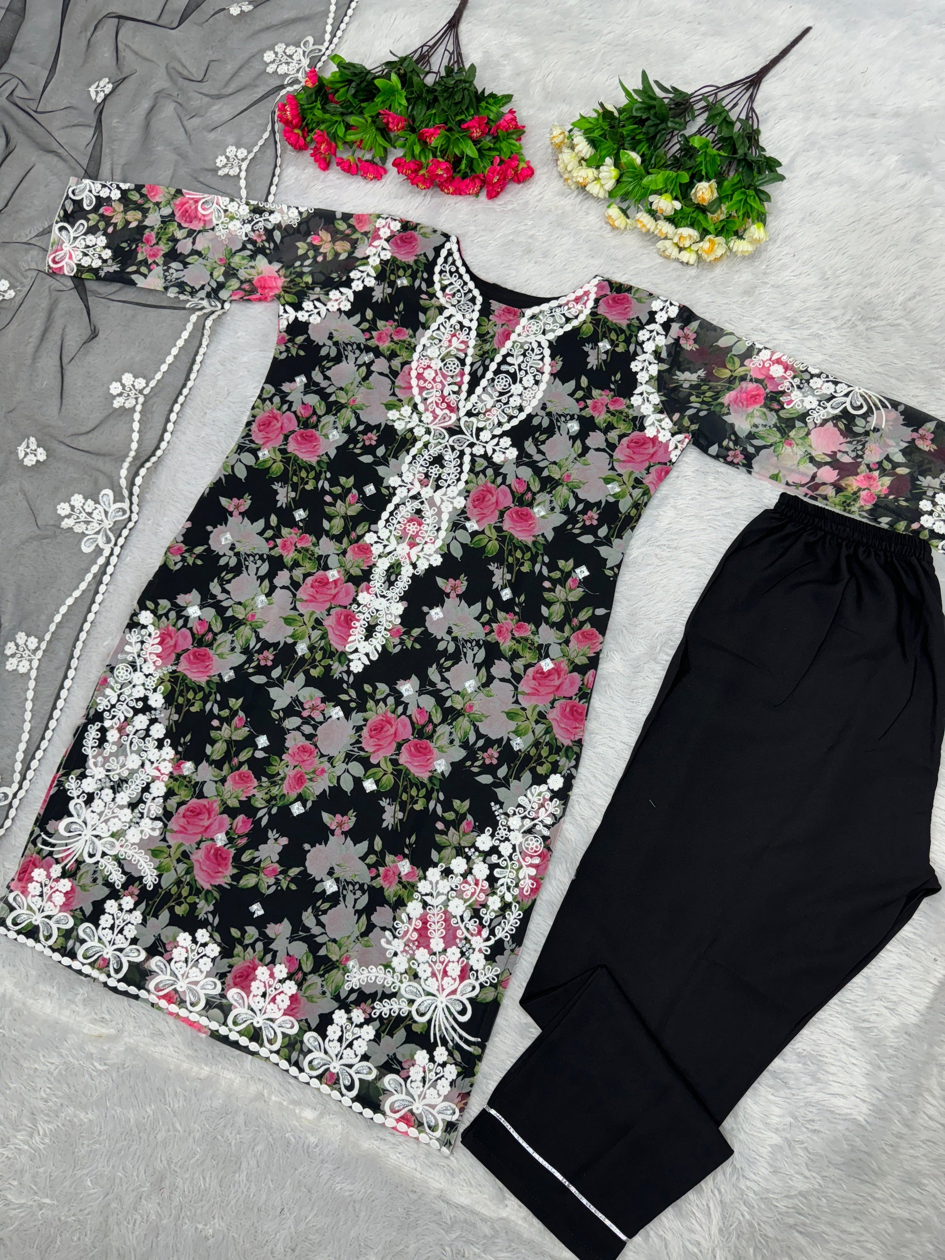 NEW DESIGNER HEAVY FUAX GEORGETTE EMBROIDERY SEQUENCES WORK WITH DIGITAL PRINT PAKISTANI SUIT*