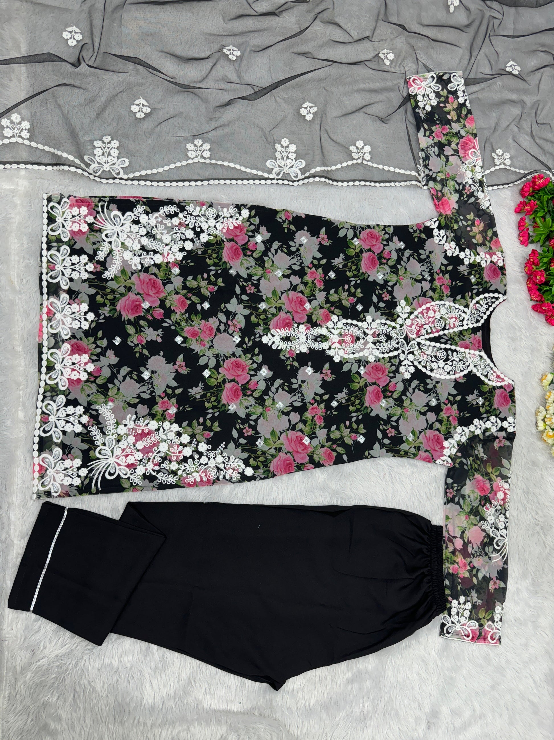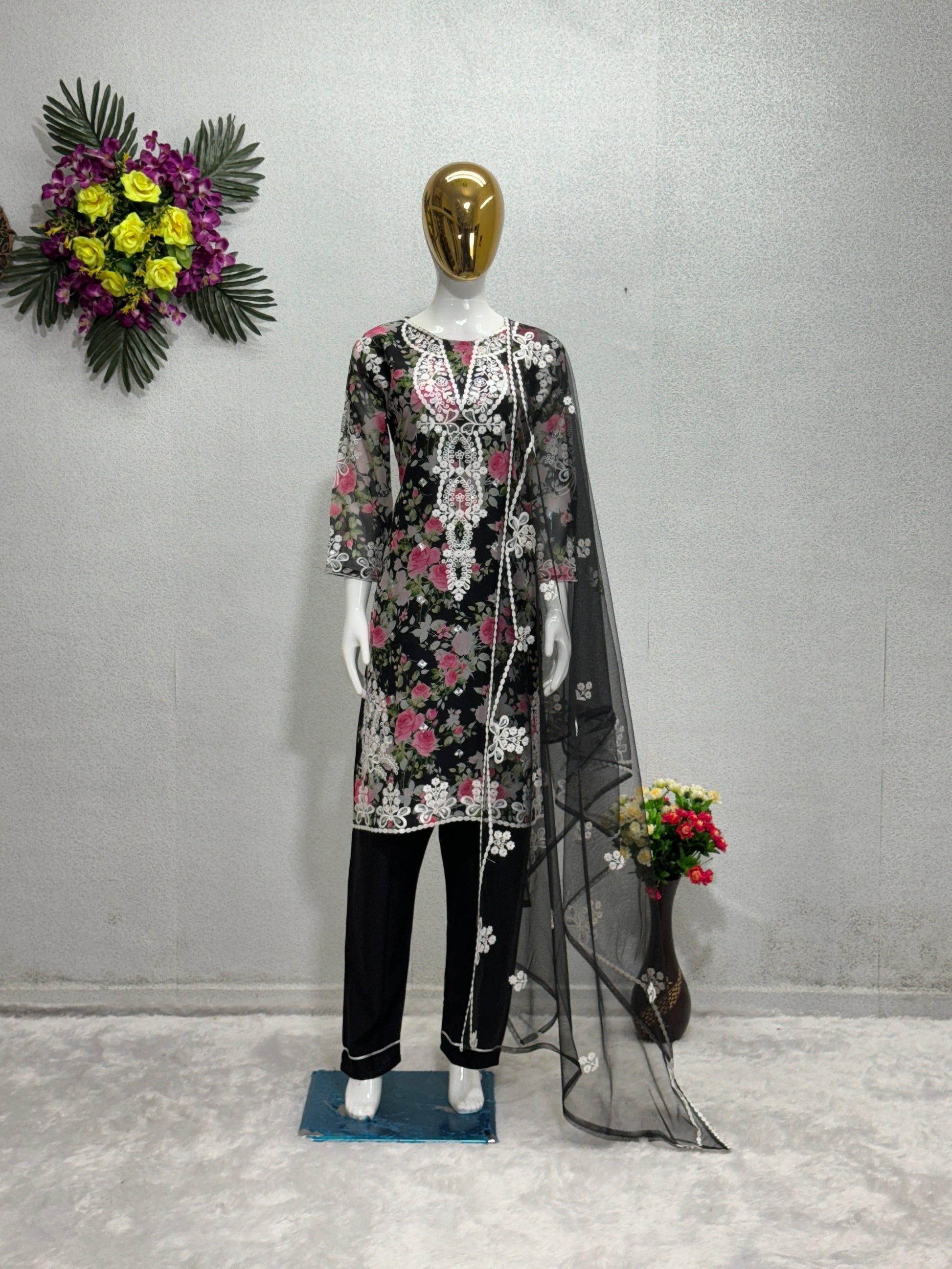 #TOP WORK : *DIGITAL PRINT WITH HEAVY EMBROIDERY SEQUENCE WORK*