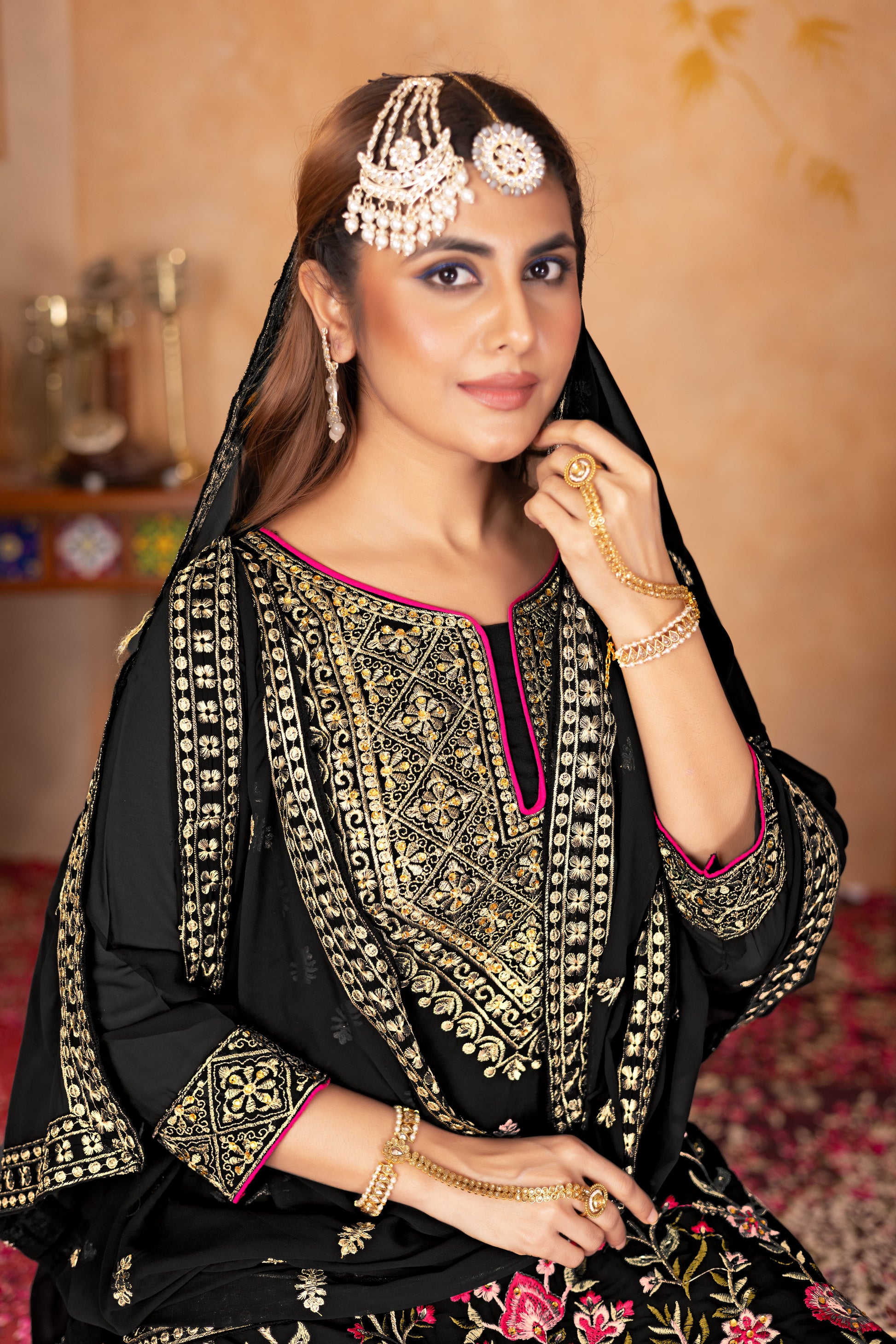 Designer Party Wear Top Plazzo And Dupatta With Real Mirror Hand Work