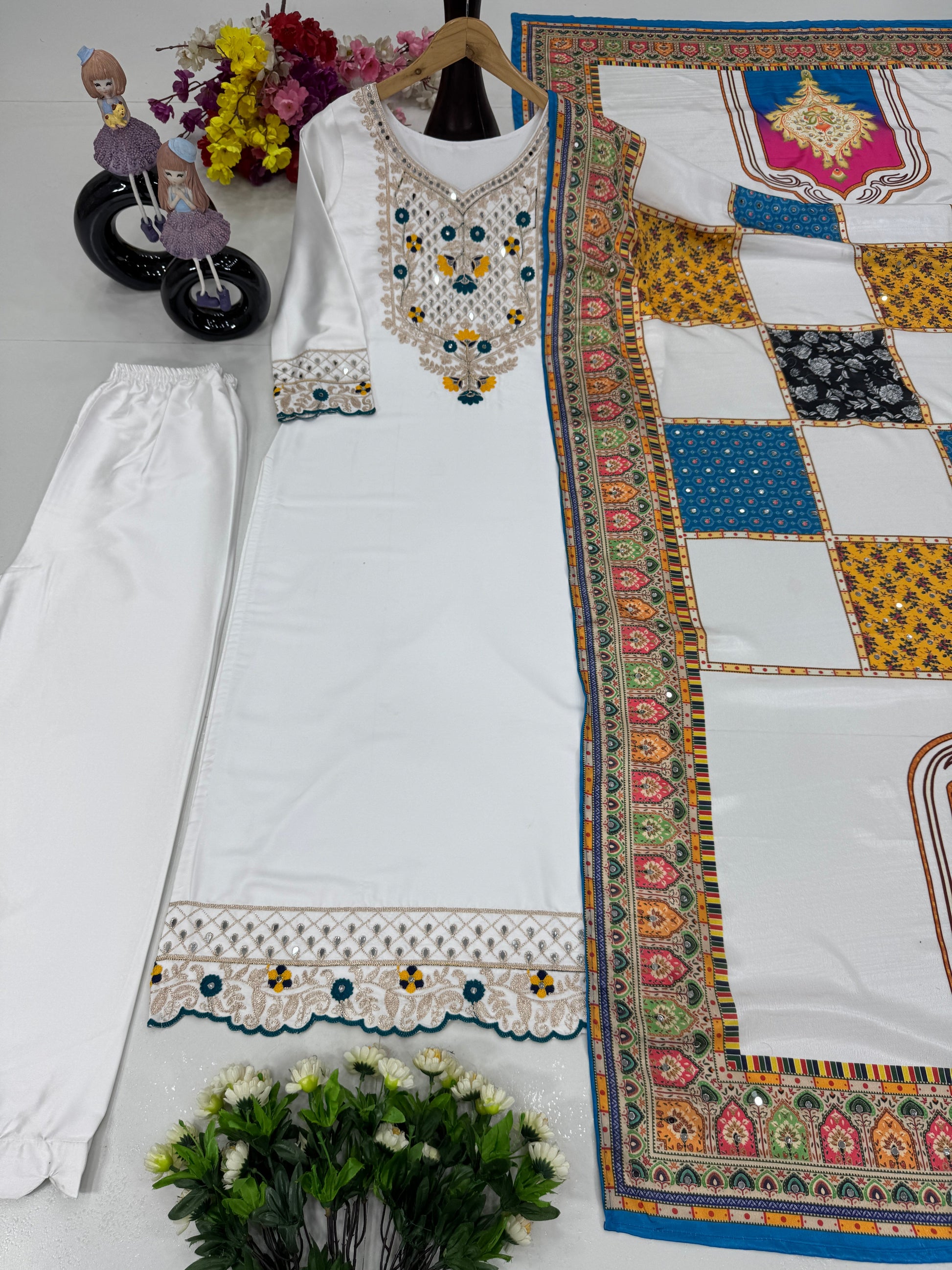 #DUPATTA WORK : DIGITAL PRINT WITH REAL MIRROR HAND WORK
