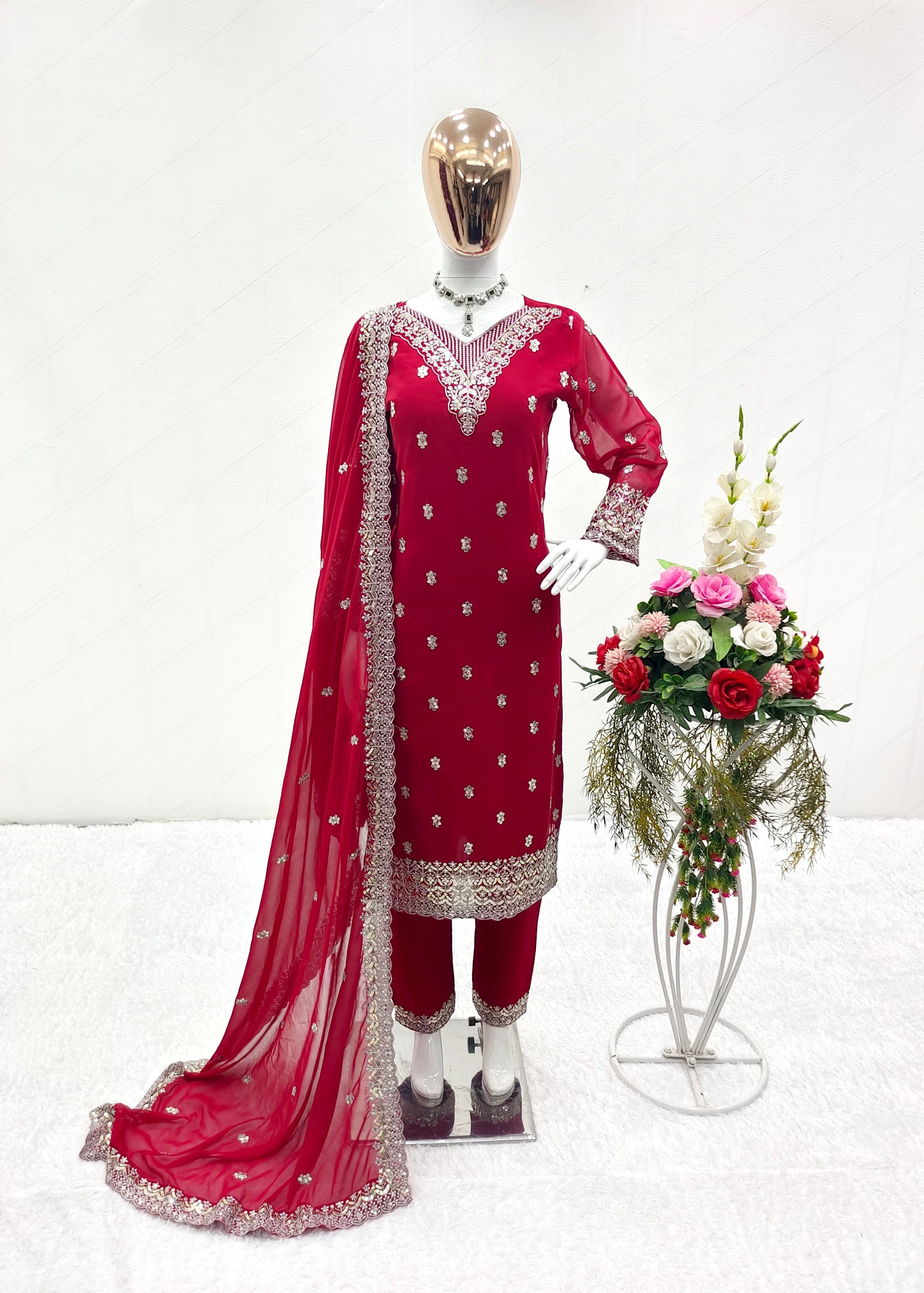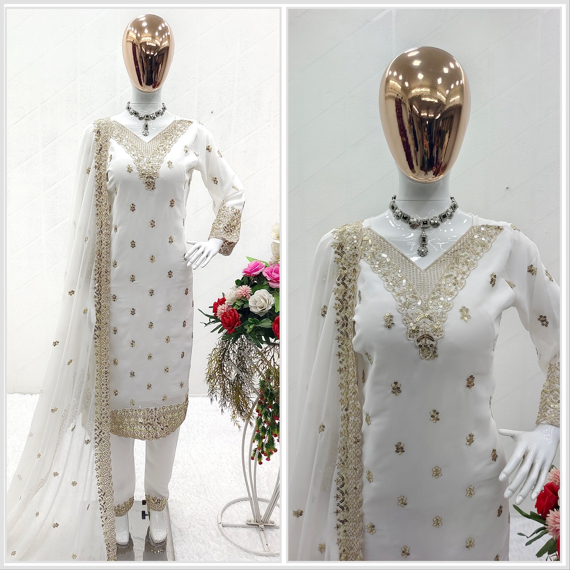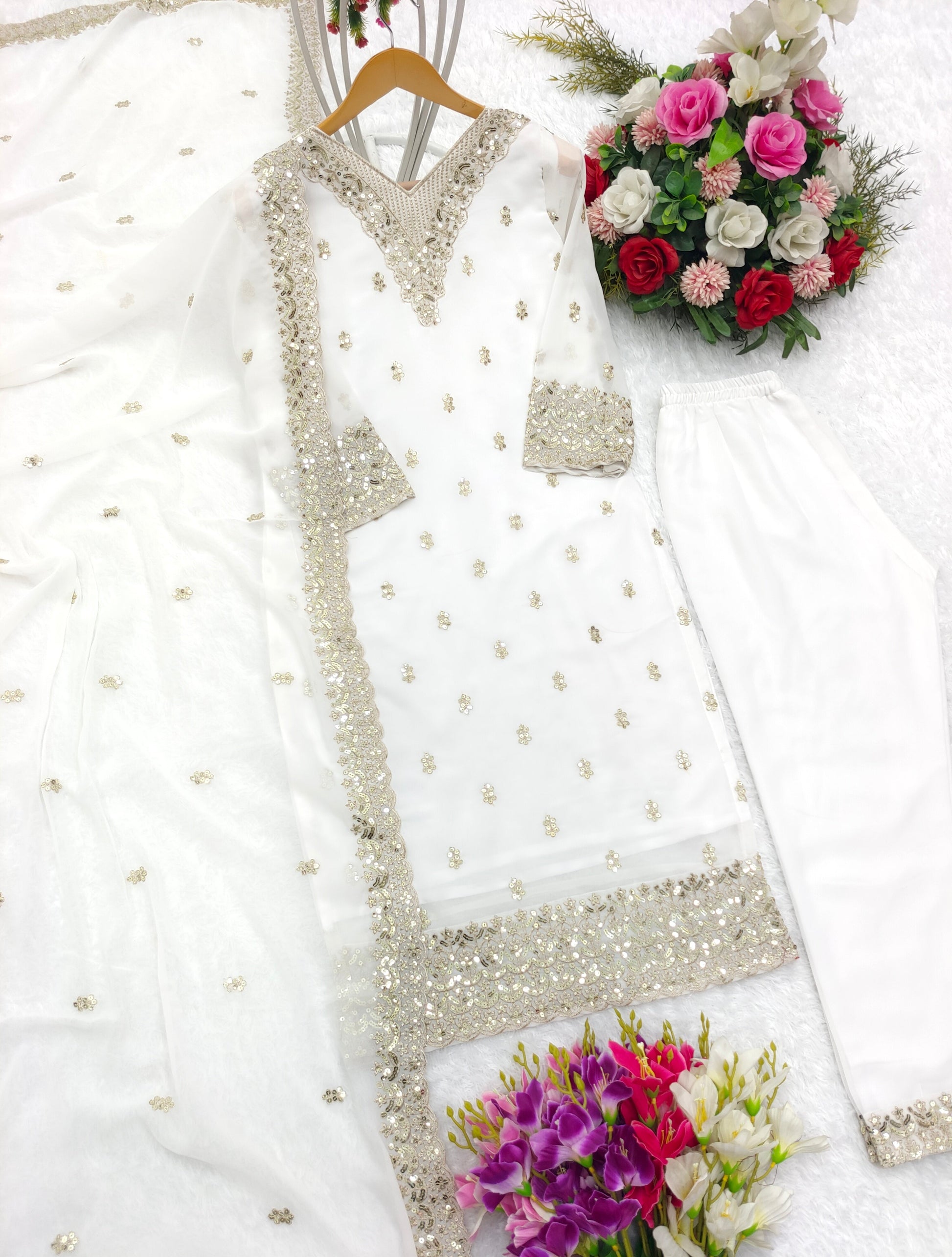 *Top Fabric* : Fox Georgette With 5mm Siqwans Embroidery Work With Sleeves With Less work