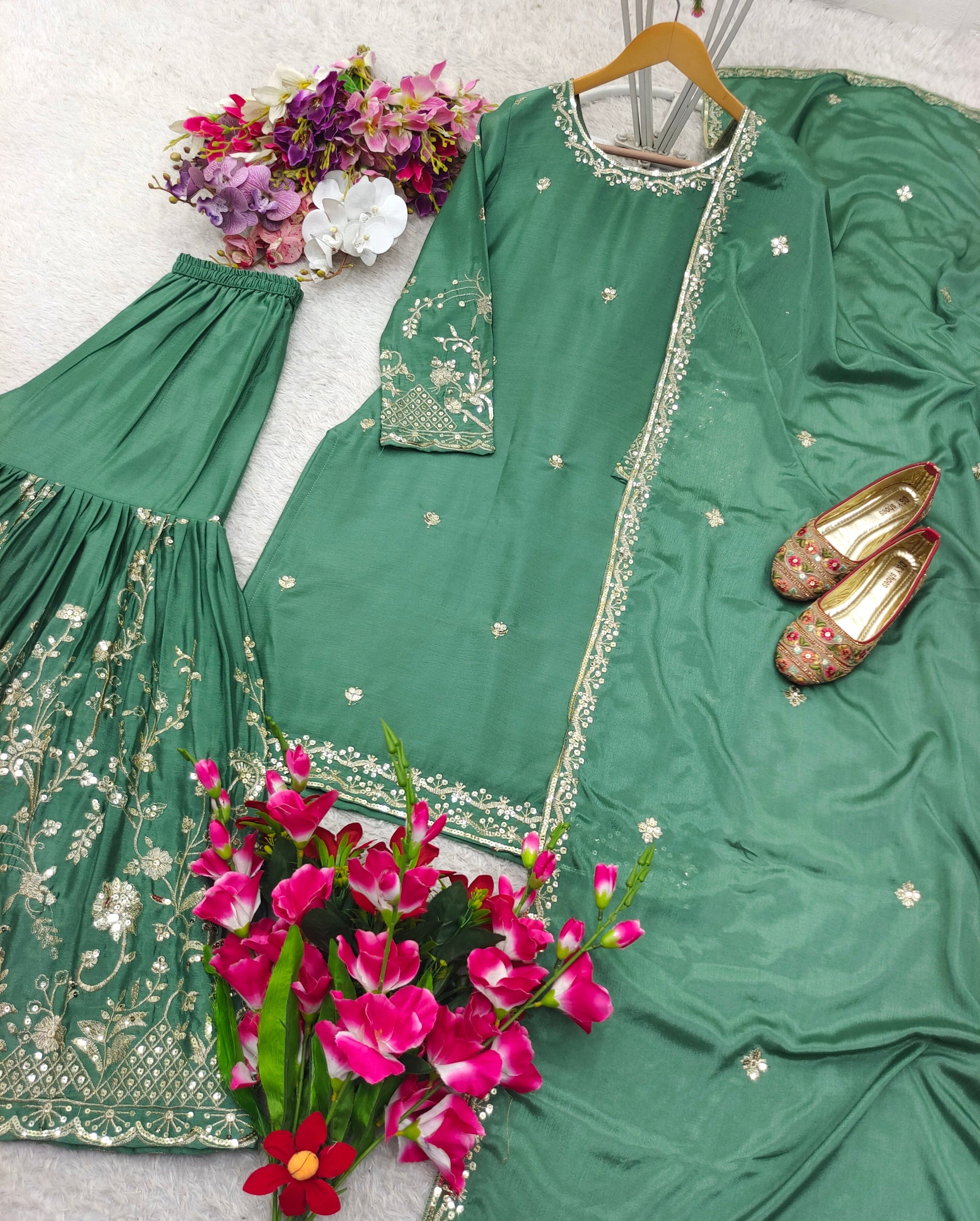 Presenting New Cinon Top-Sarara and Dupatta Set Fully Stitched Ready To Wear