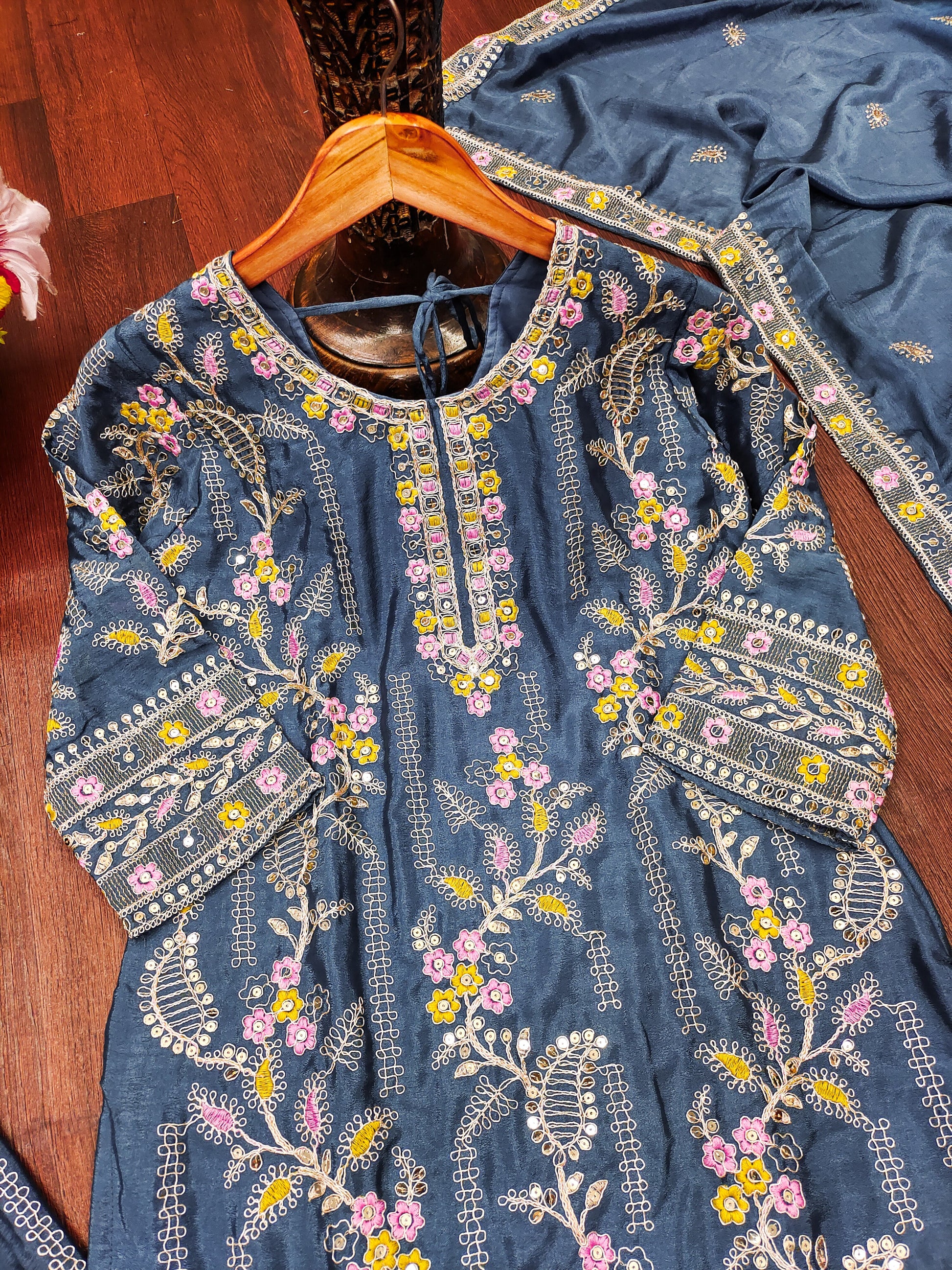 Presenting New Designer Embroidered Chinon Sharara Suit With Coding Sequence Embroidered Work