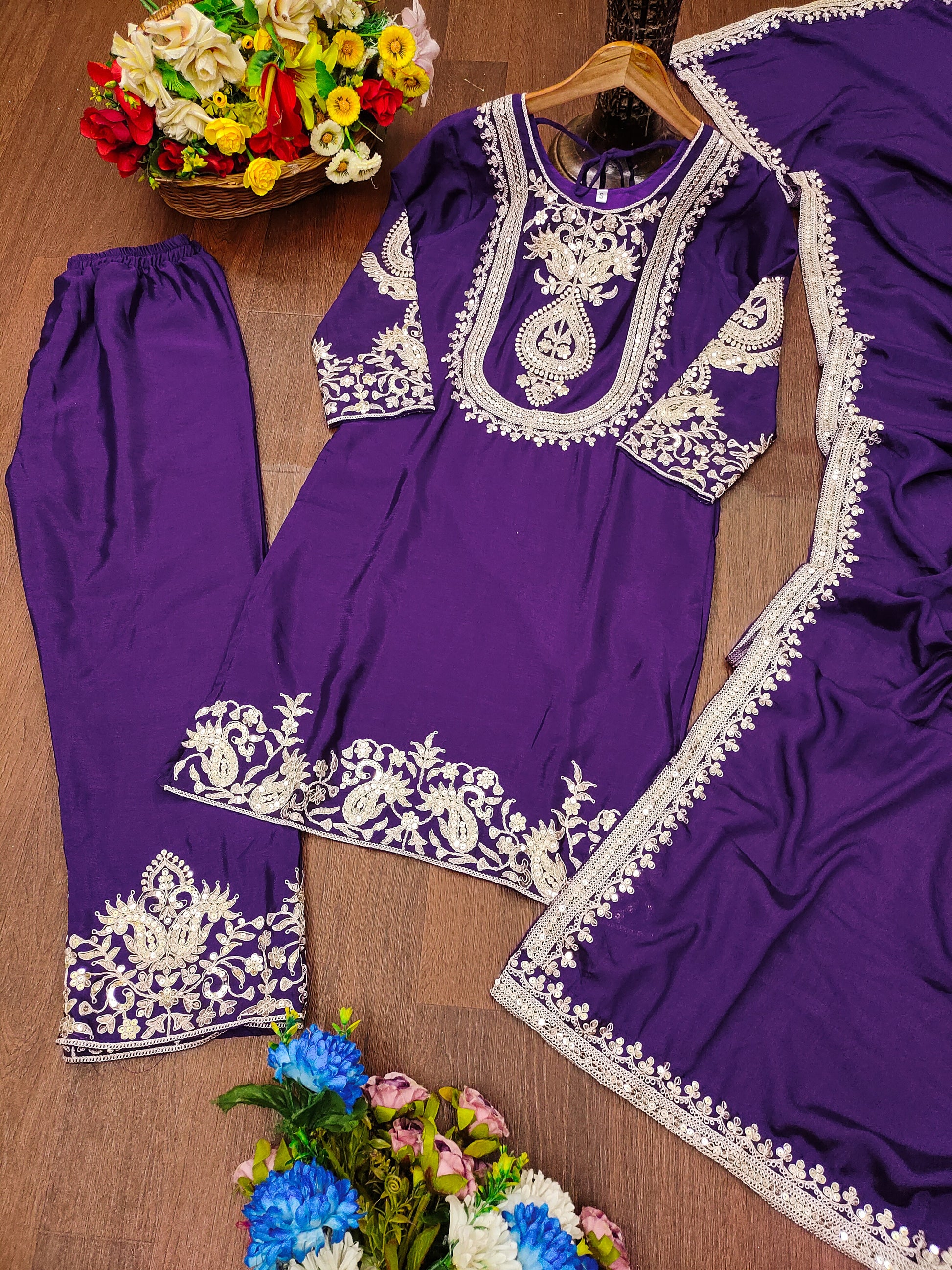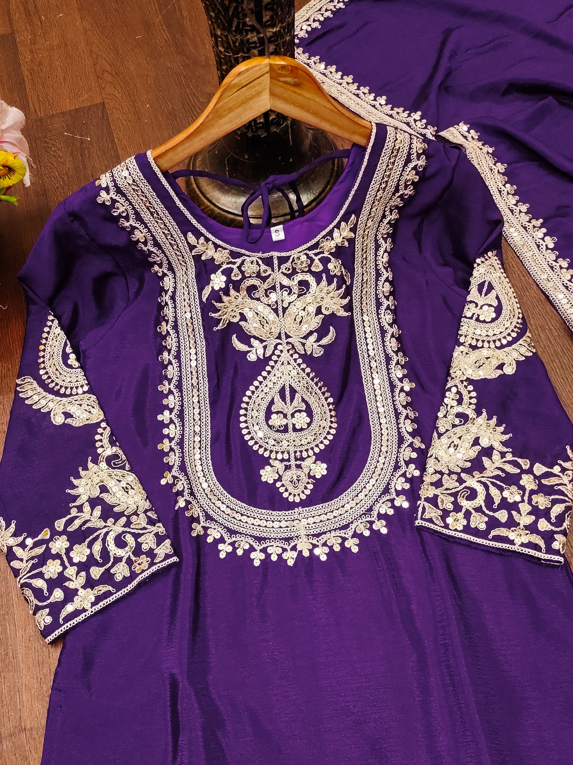 Presenting New Designer Embroidered Chinon Suit With Coding Sequence Embroidered Work