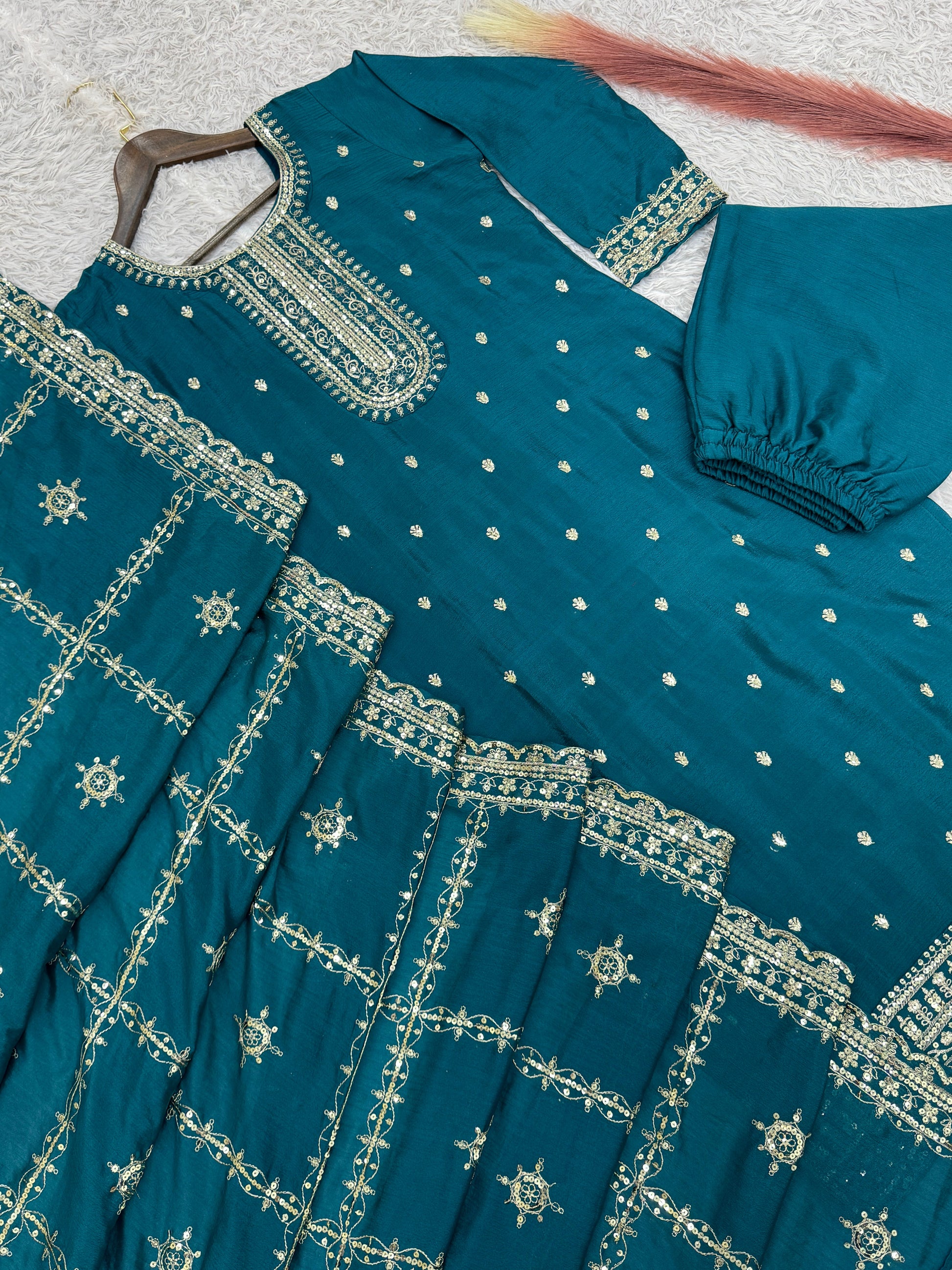 PRESERNTING NEW READY TO WEAR COLLECTION WITH EMBROIDERY WORK LONG TOP - PENT WITH DUPATTA *
