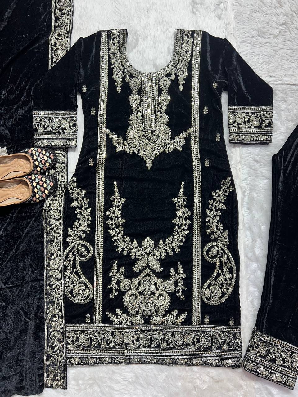 *Pant fabric* :Pure Heavy Viscous Velvet With Heavy Embroidery Coding Sequence Work *(Fully Stitched)*