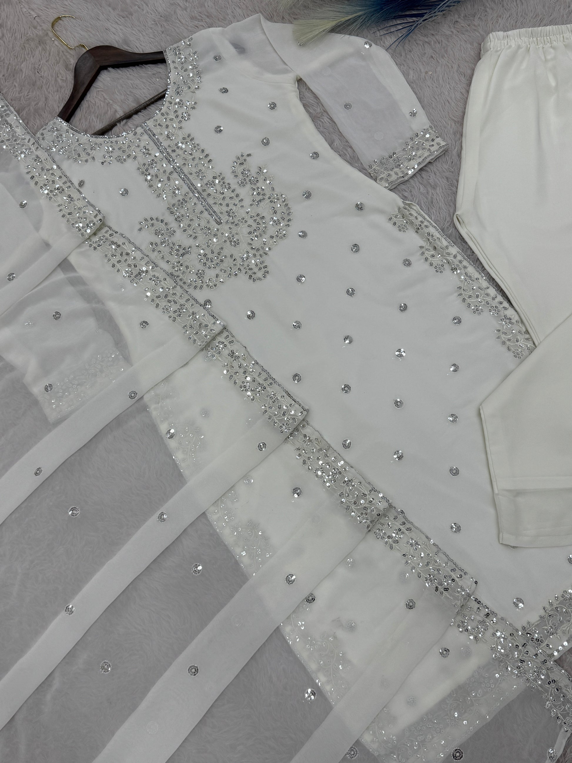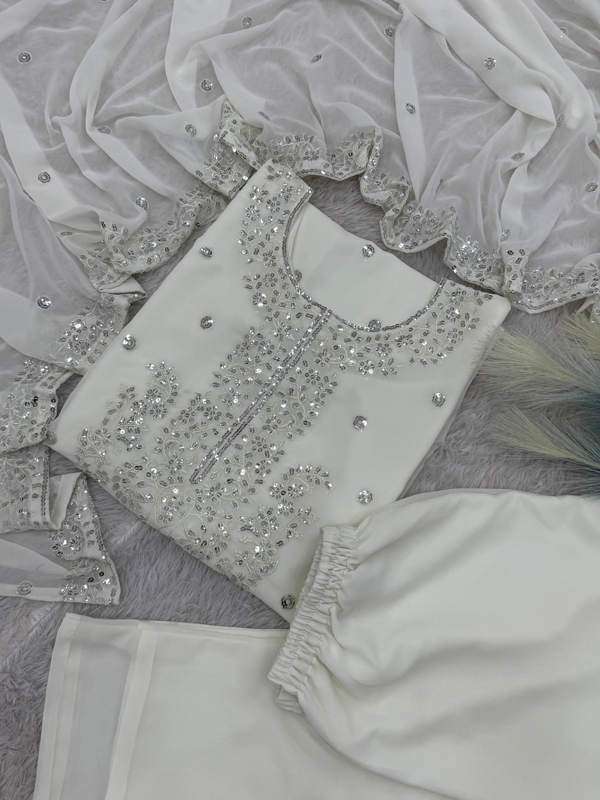 *Presenting New Premium Collection With Embroidery And Sequence Worked Top-Bottom And Dupatta Set Fully Stitched Ready To Wear *