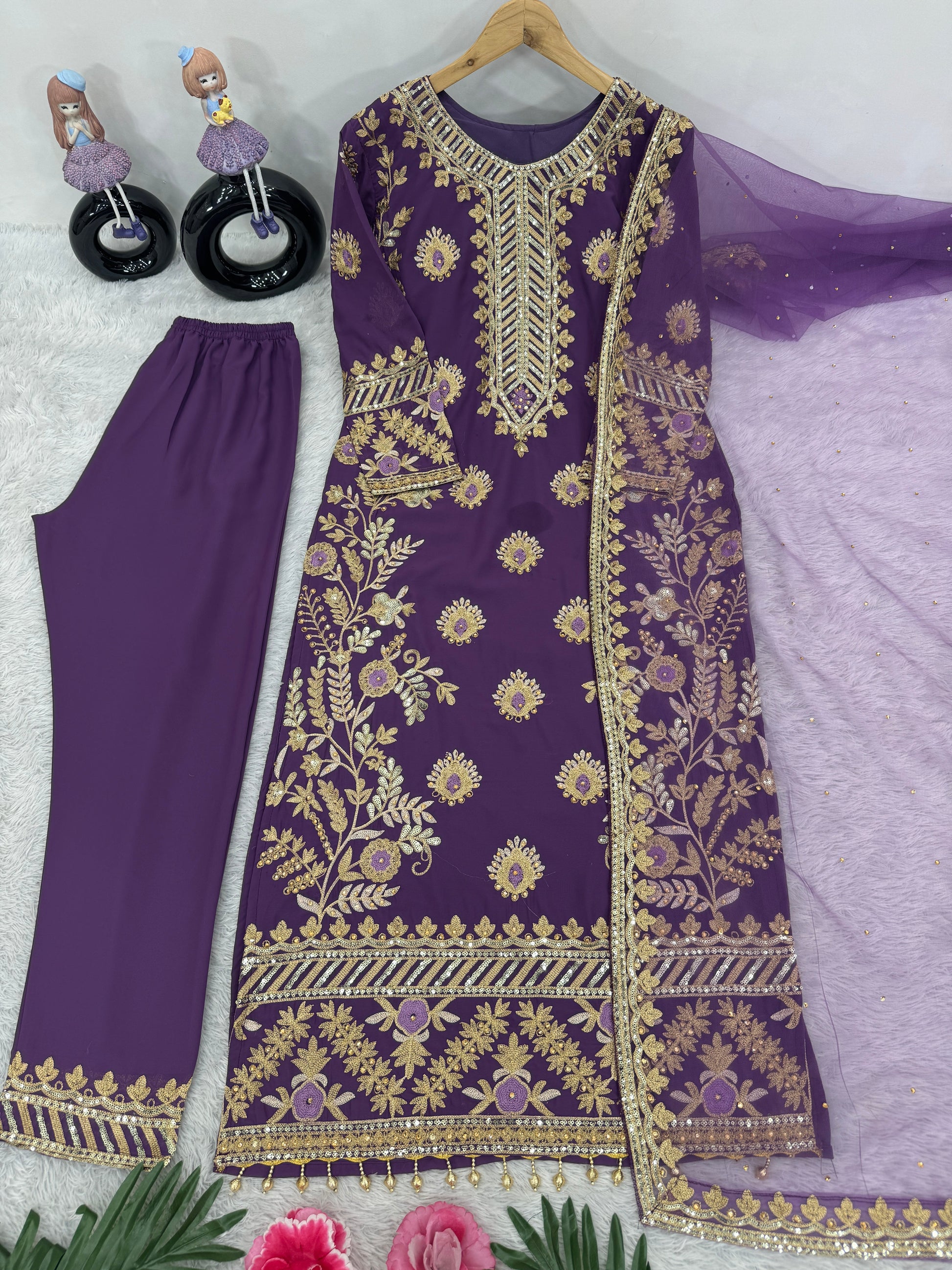Designer Top Pent And Dupatta With Sequence And Fancy Lace