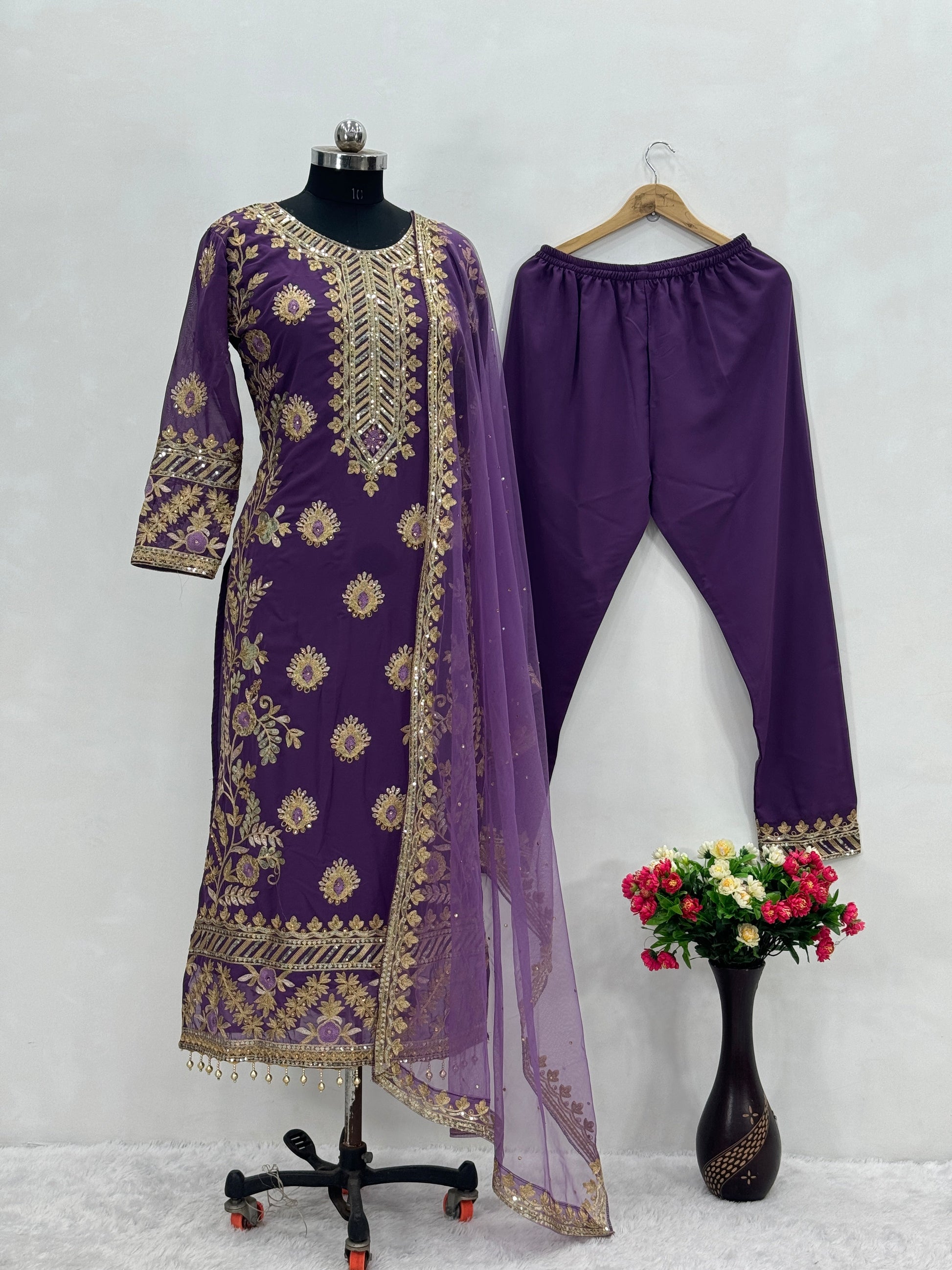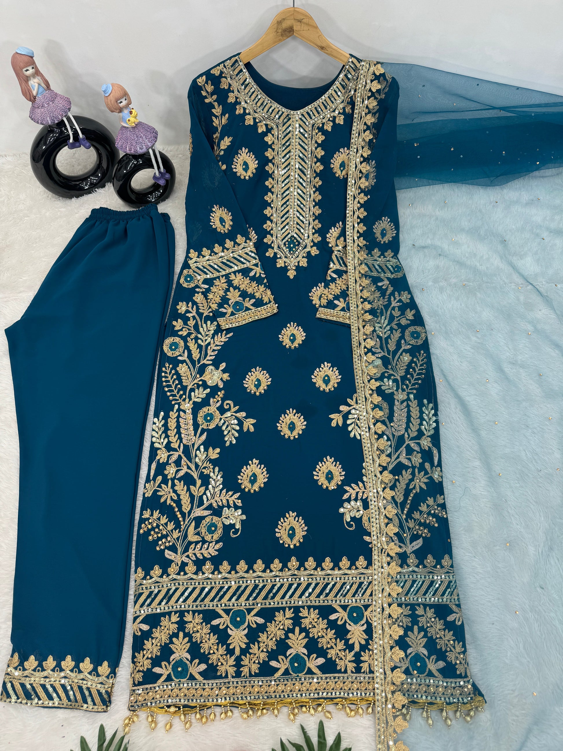 NEW DESIGNER WEAR HEAVY CHINE SEQUENCE WORK 3 PIS SUIT SET*