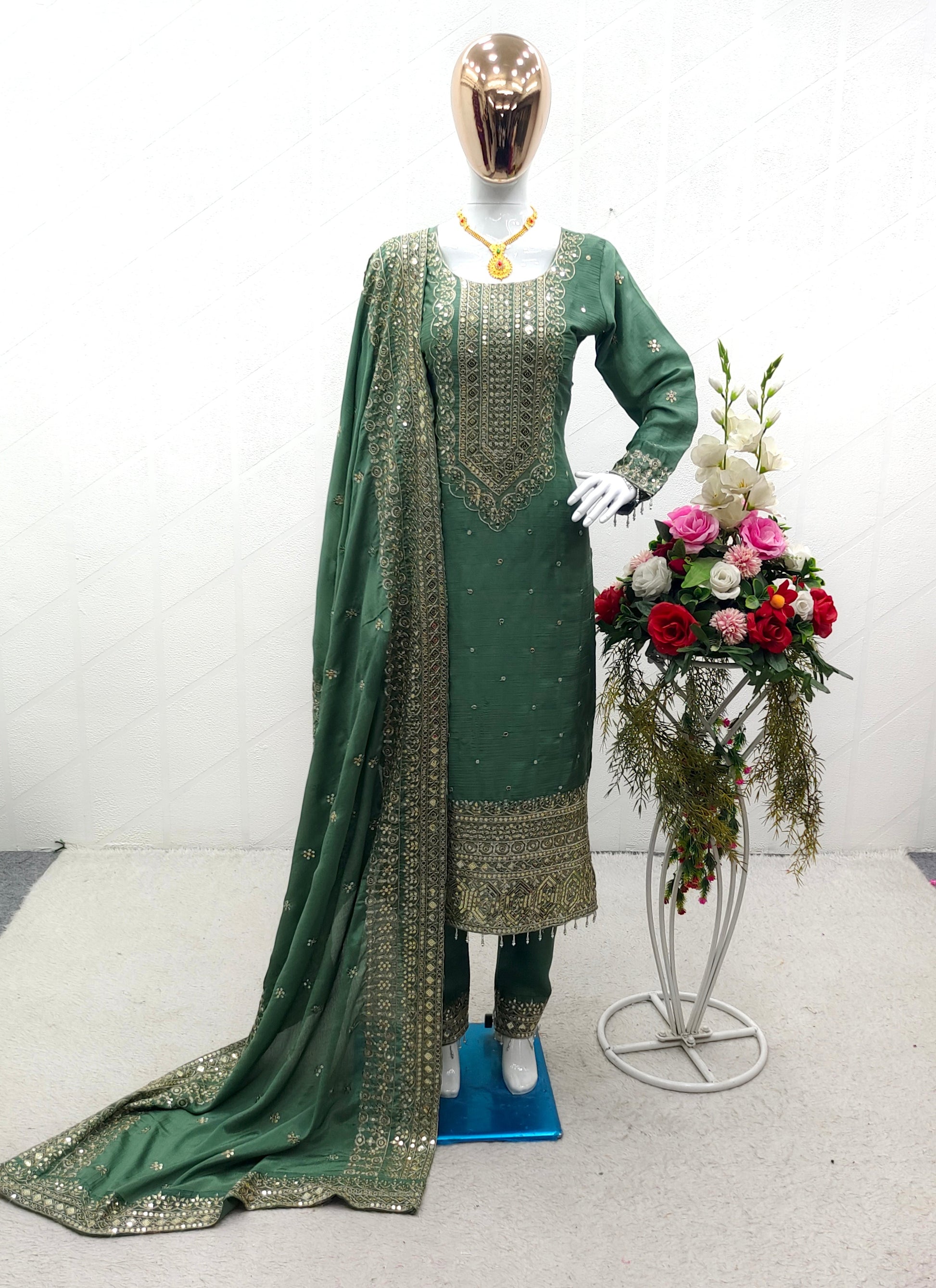 *Pent Fabric*: Pure Cinon Silk With 5mm Siqwans Embroidery Lees Work With Moti Less Work With Elastic Rubber