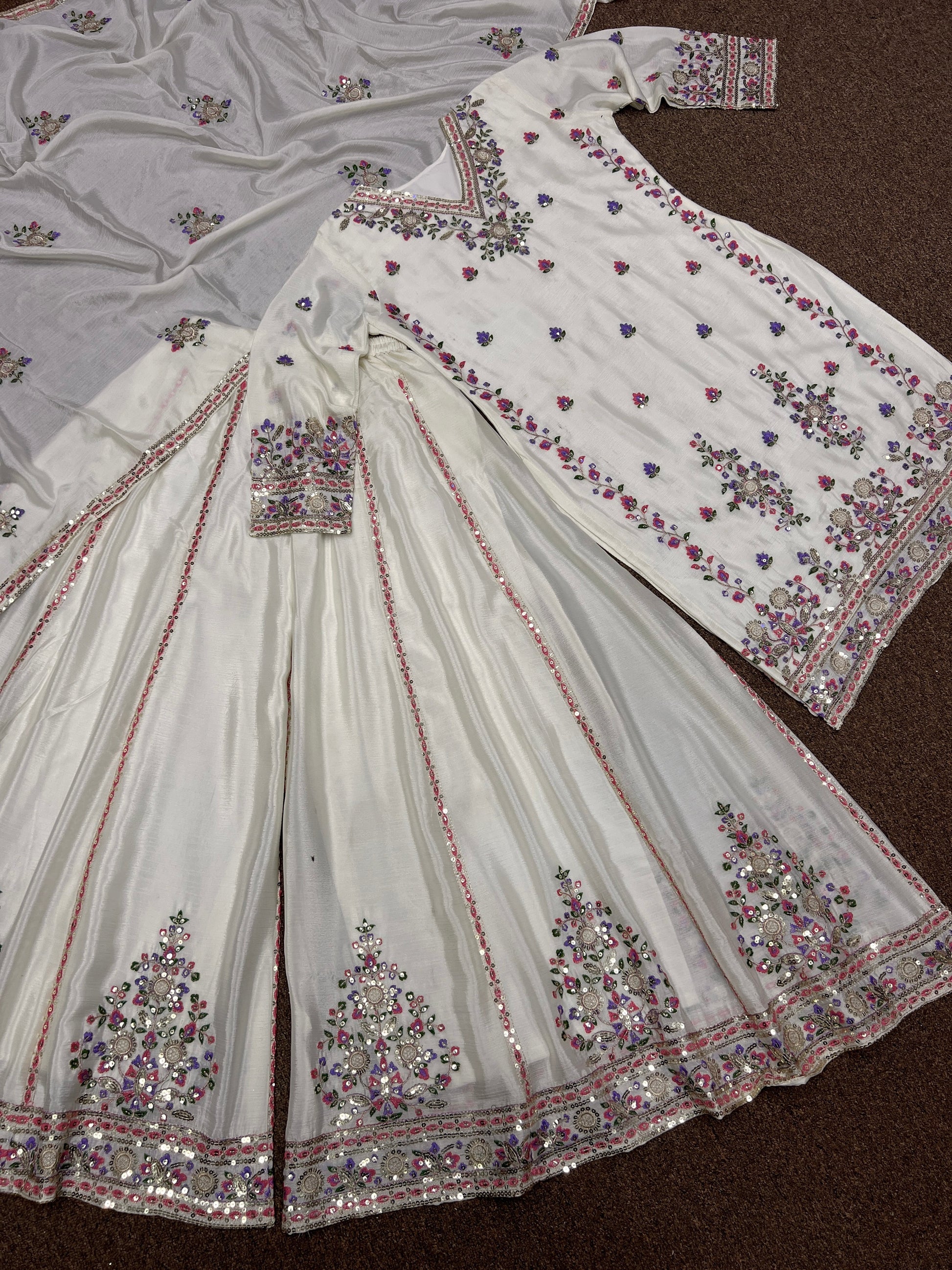 *Launching New Beautiful Design Ready Made Collection Fancy Embroidery And Sequins Work Top - Plazzo With Dupatta*