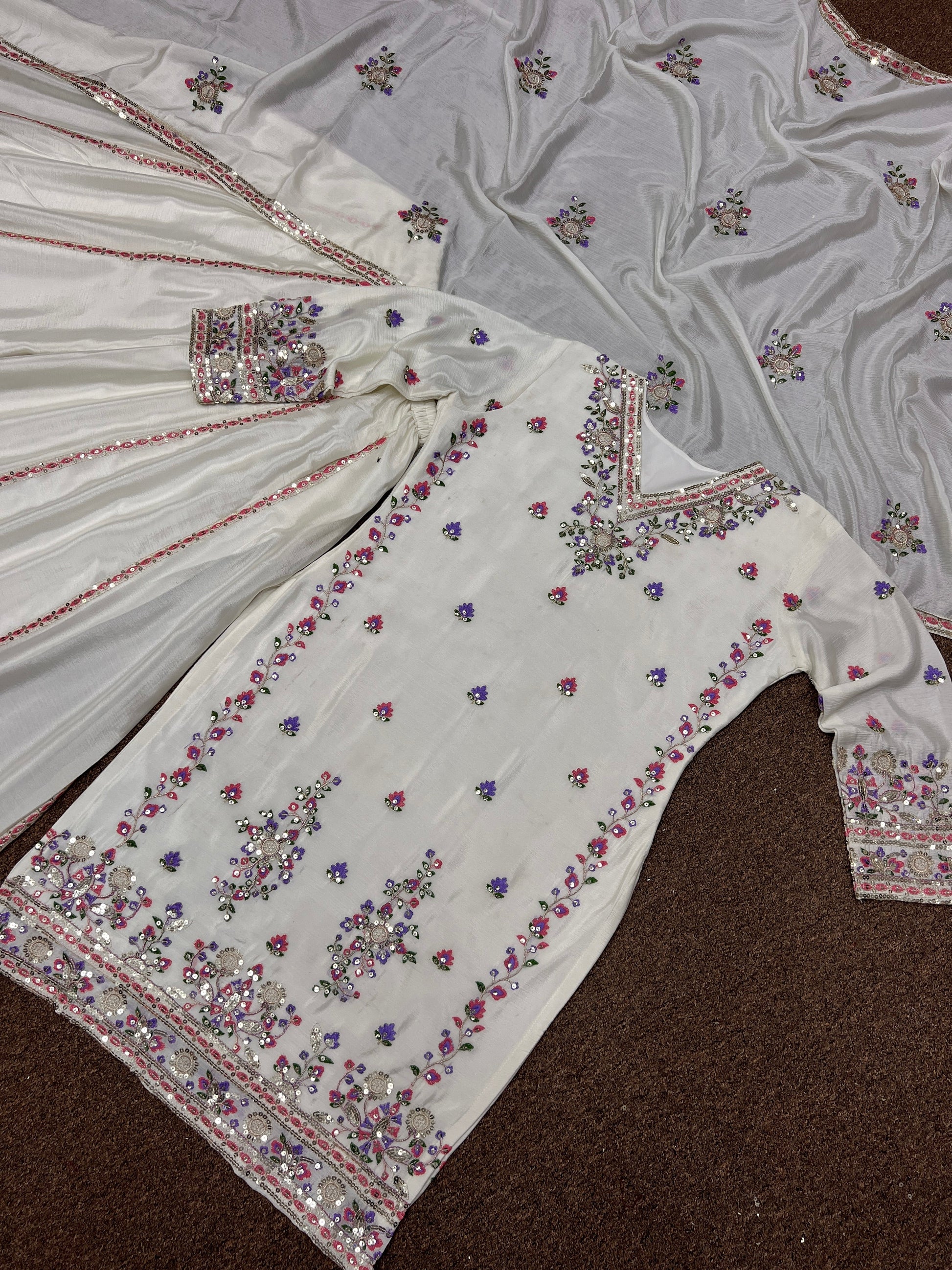 *# Plazzo Fabric* : Pure Chinon Silk With Fancy Heavy Embroidery Thread And Sequins Work