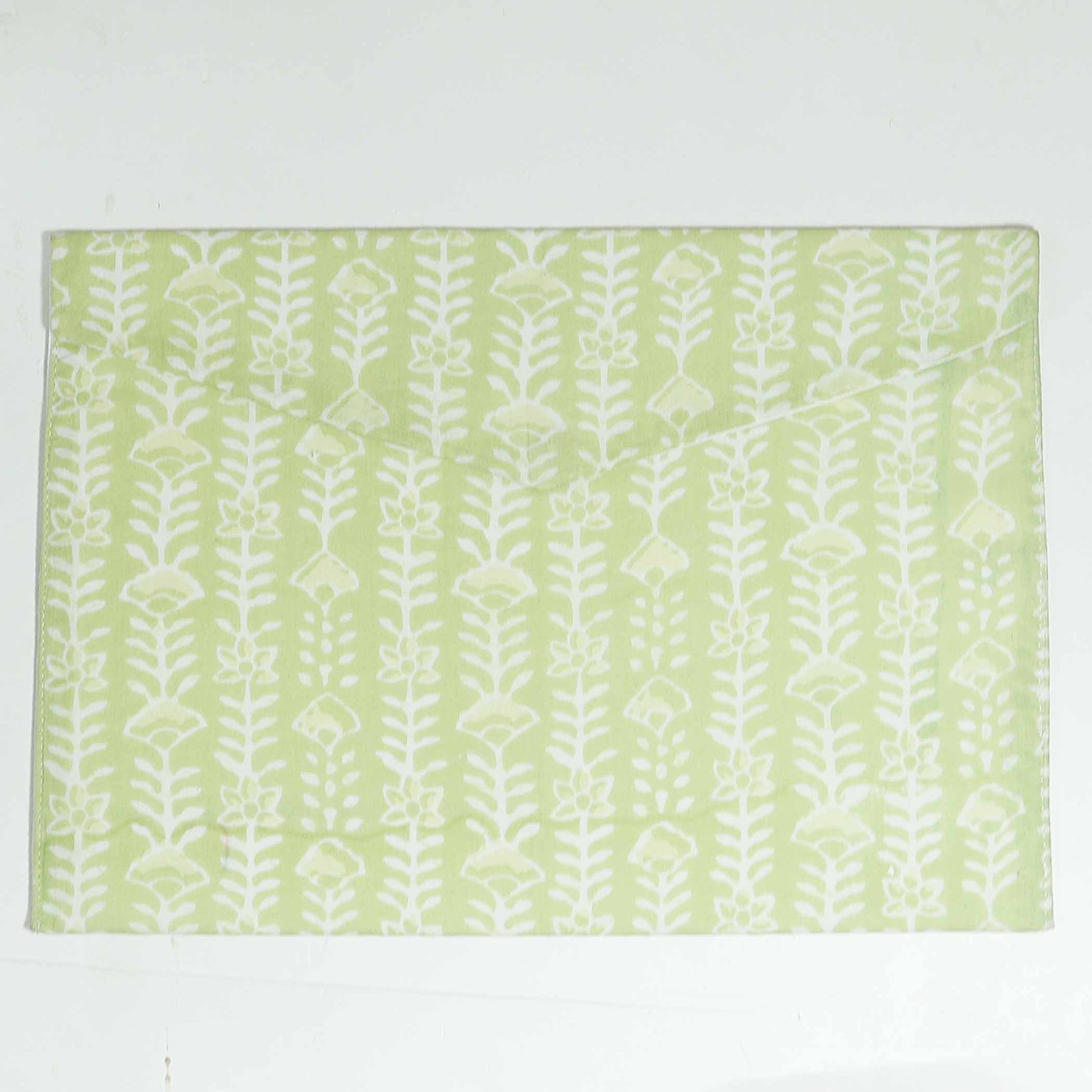This 14 x 10 inch fabric envelope comes in a range of beautiful assorted prints — you may receive any one from the designs shown. Perfect for tucking in documents, sketches, stationery, or even a slim laptop. Lightweight yet sturdy, with a clean magnetic button closure, it’s practical for everyday use and charming enough to gift.
