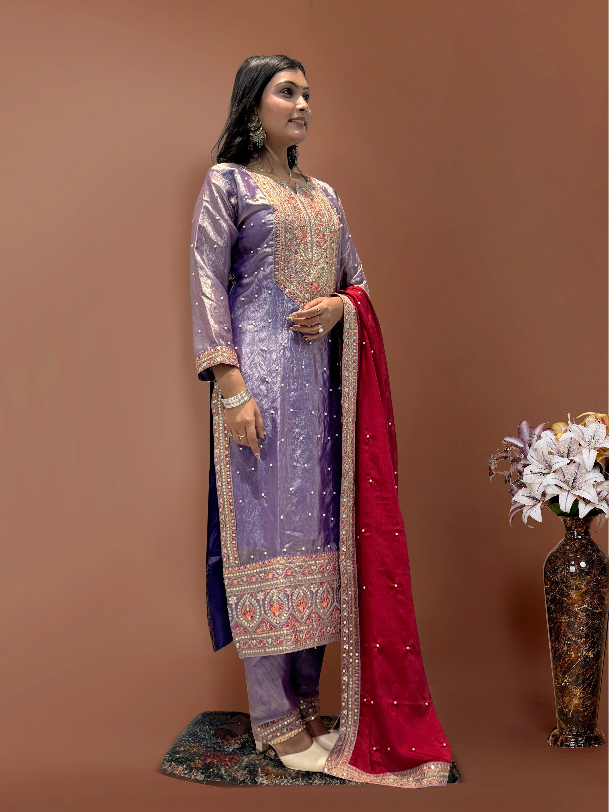 Fancy Top-Bottom And Dupatta With Embroidery Coding Dori-Sequence Work