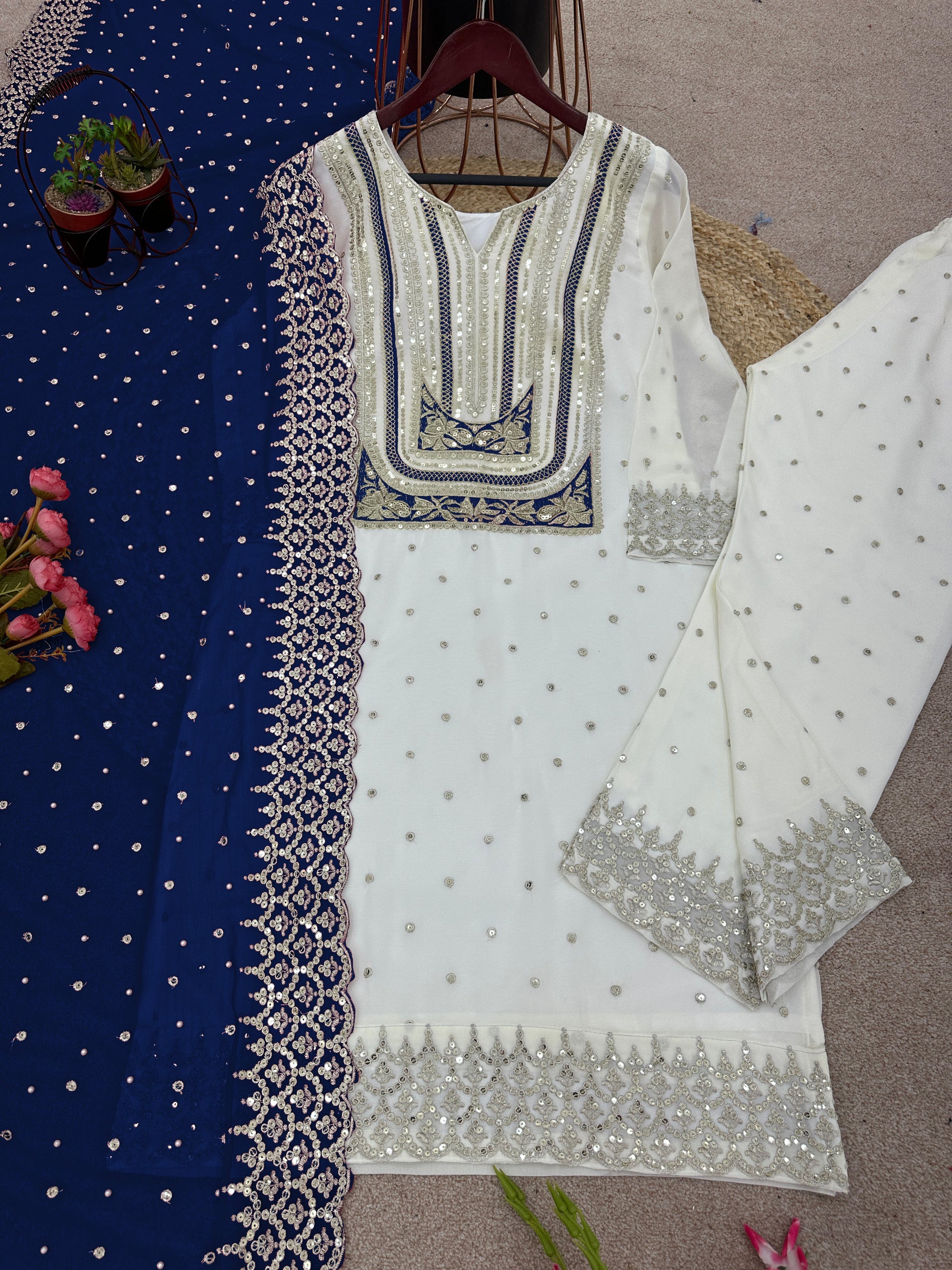 *Bottom Fabrics* :Heavy Faux Georgette With Embrodary Siquance Work