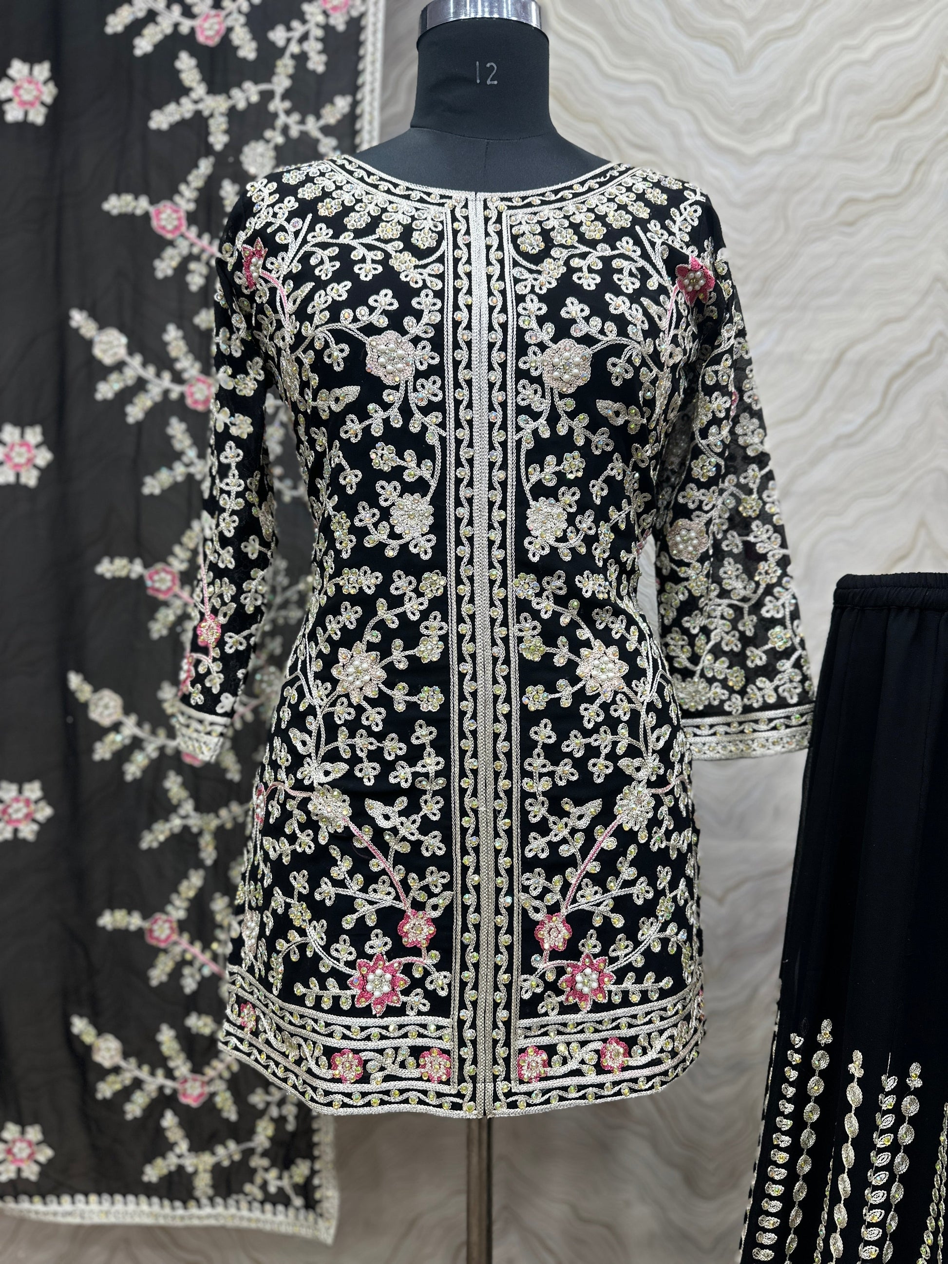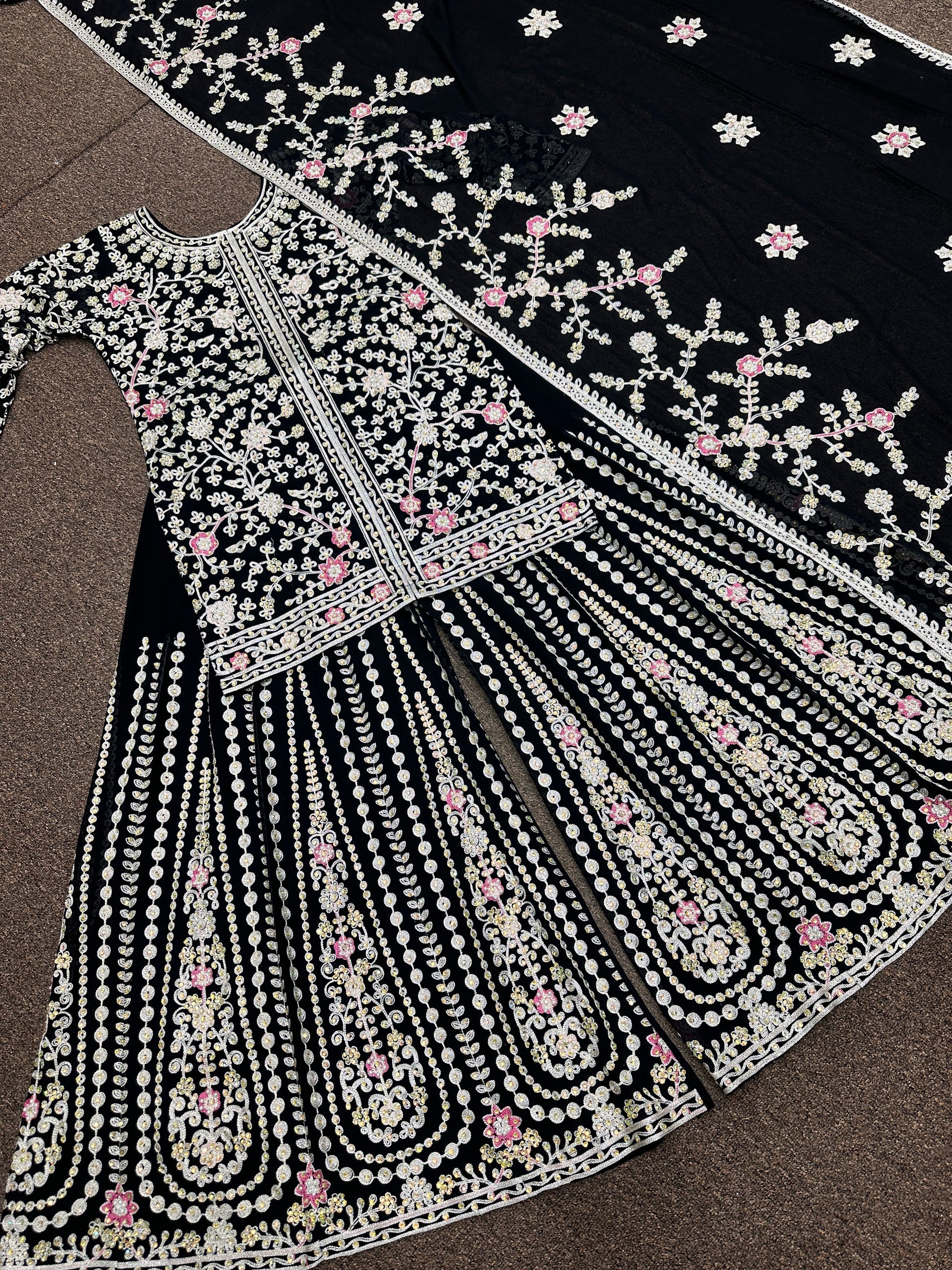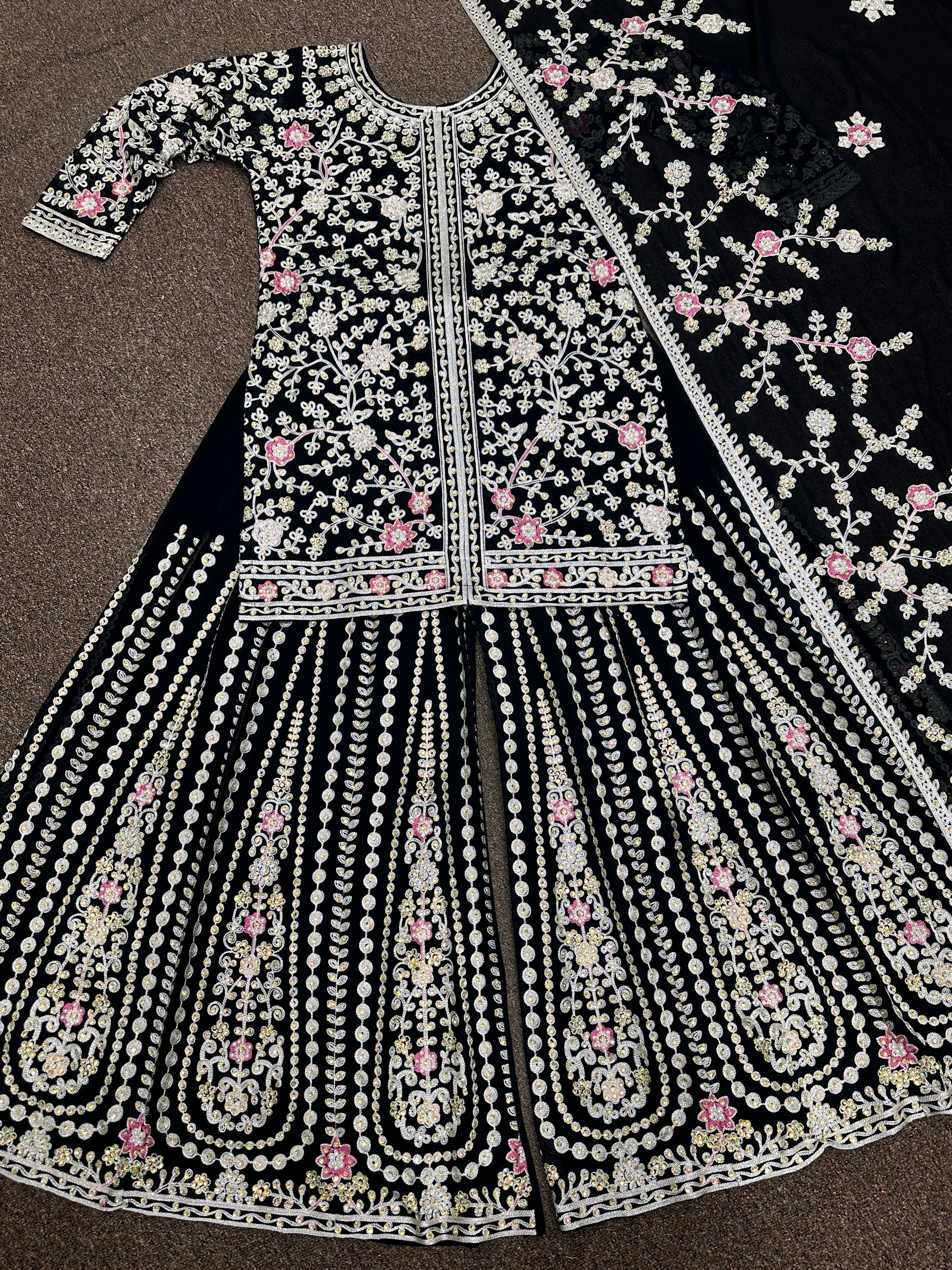 *Presenting New Hit Design Collection Fancy Heavy Embroidery And 9k+ Stone Hand Work Top - Garara With Fancy Dupatta*