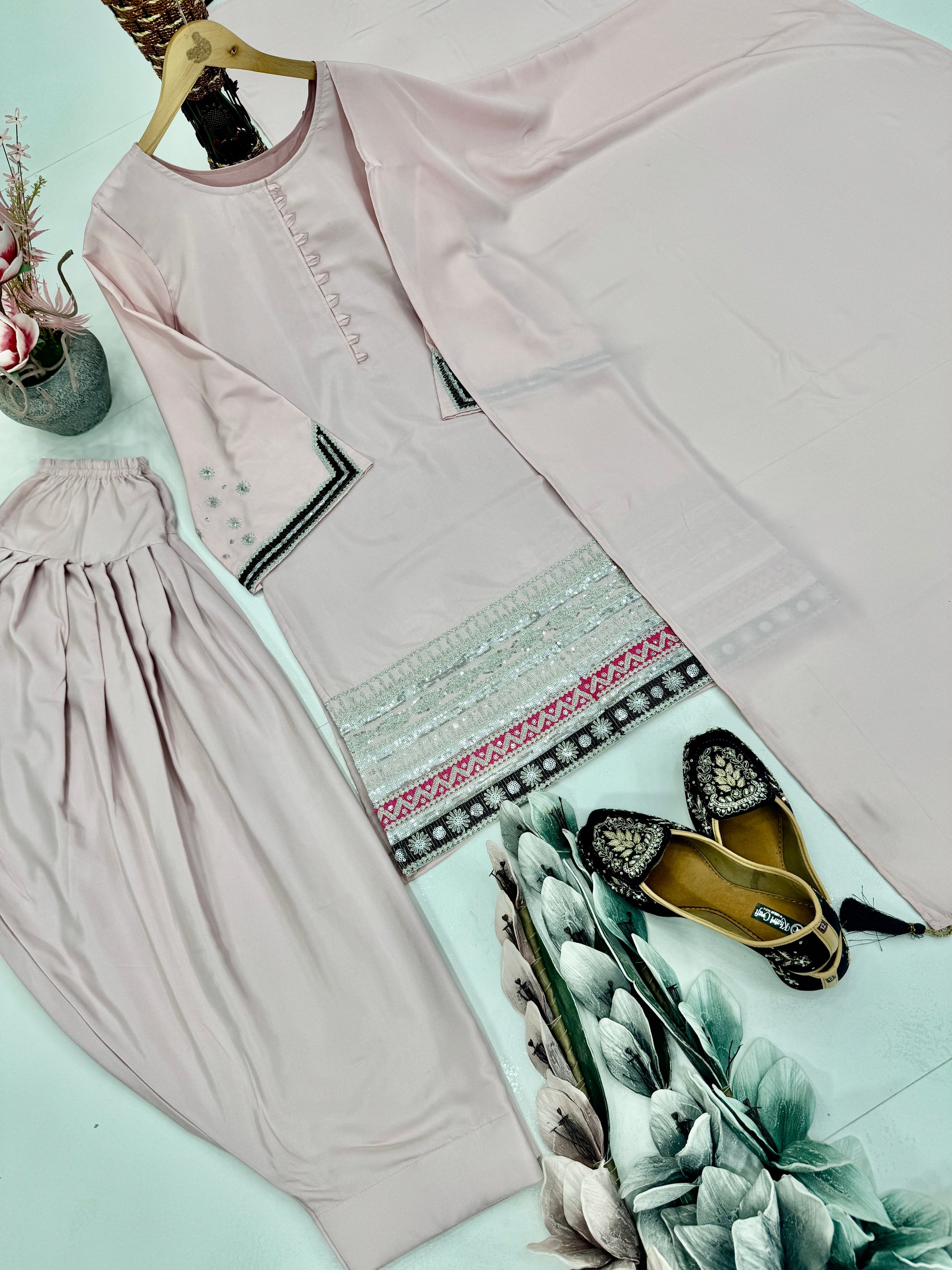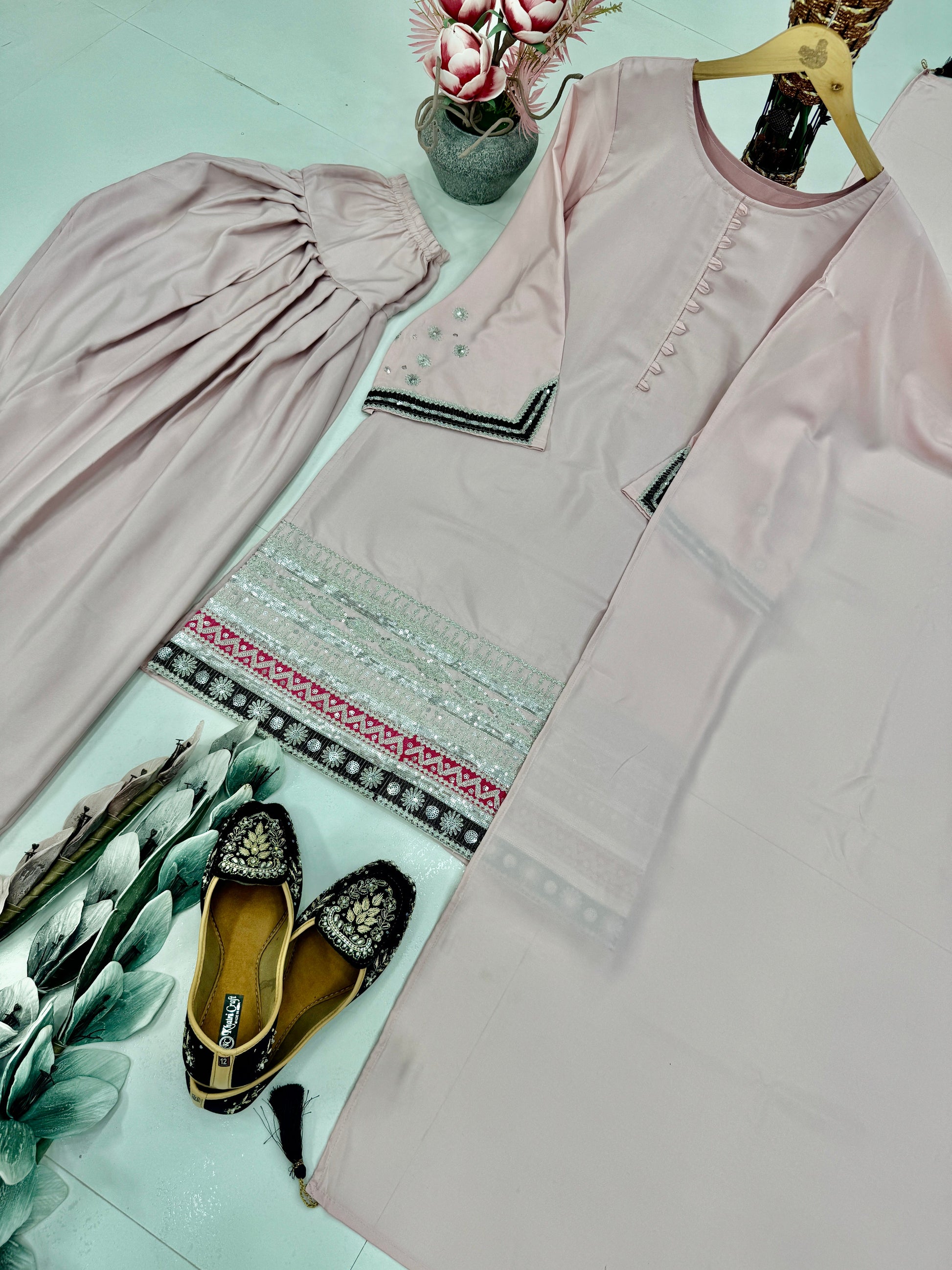 Fancy Top Pent And Dupatta With Embroidery Sequence Work