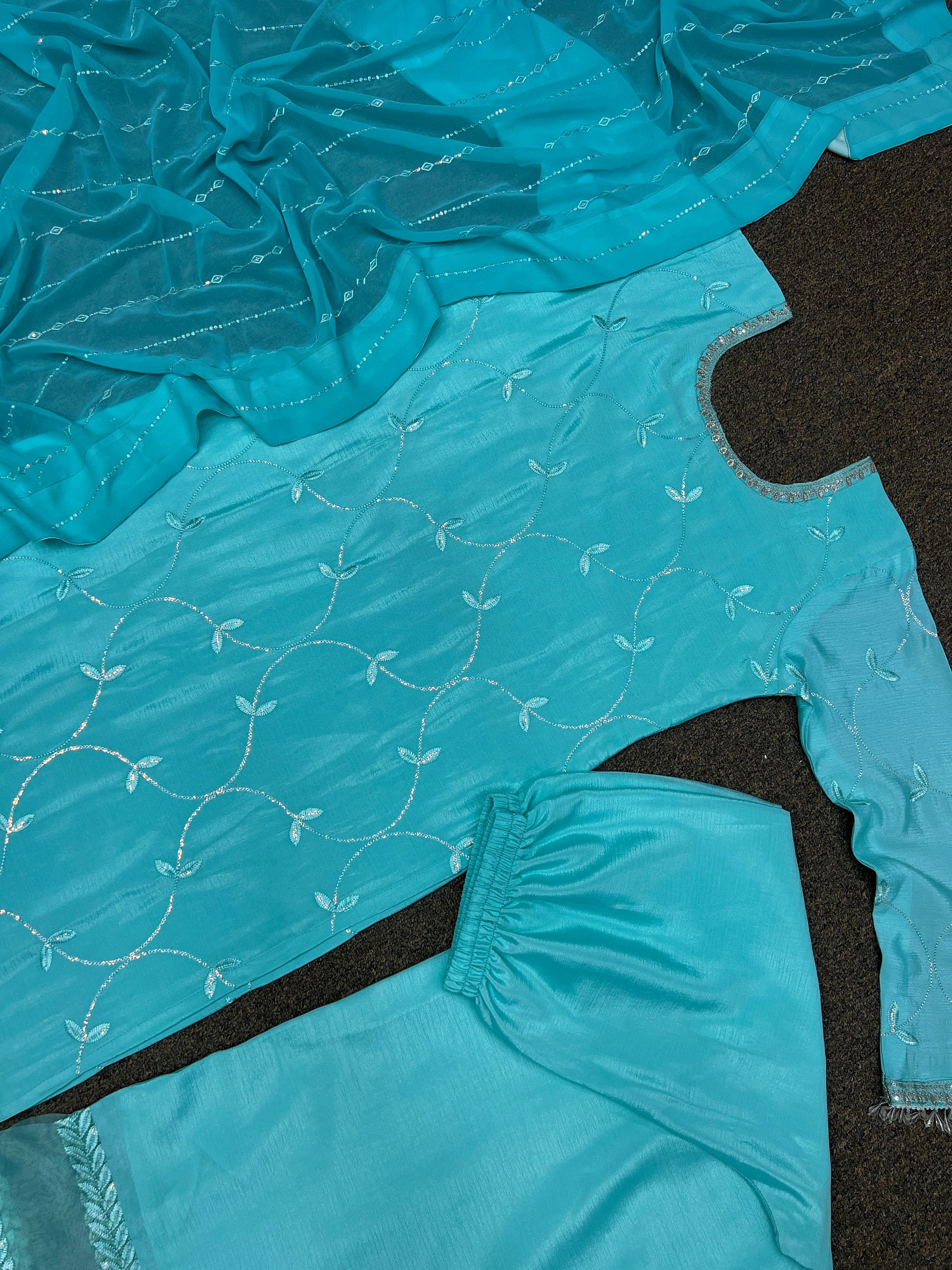 *# Plazzo Fabric* : Pure Chinon Silk And Organza Silk With Embroidery And Sequins Work