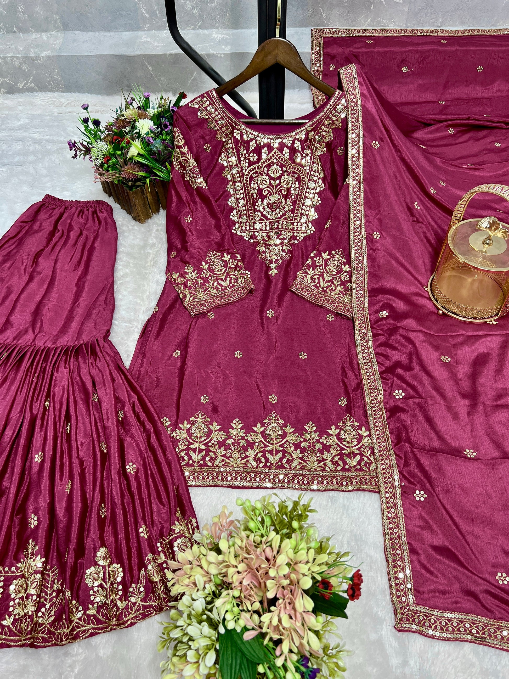 *Presenting New _Real Modeling_ In Premium Quality With Embroidery And Sequence Worked Top-Sharara And Dupatta Set Fully Stitched Ready To Wear *
