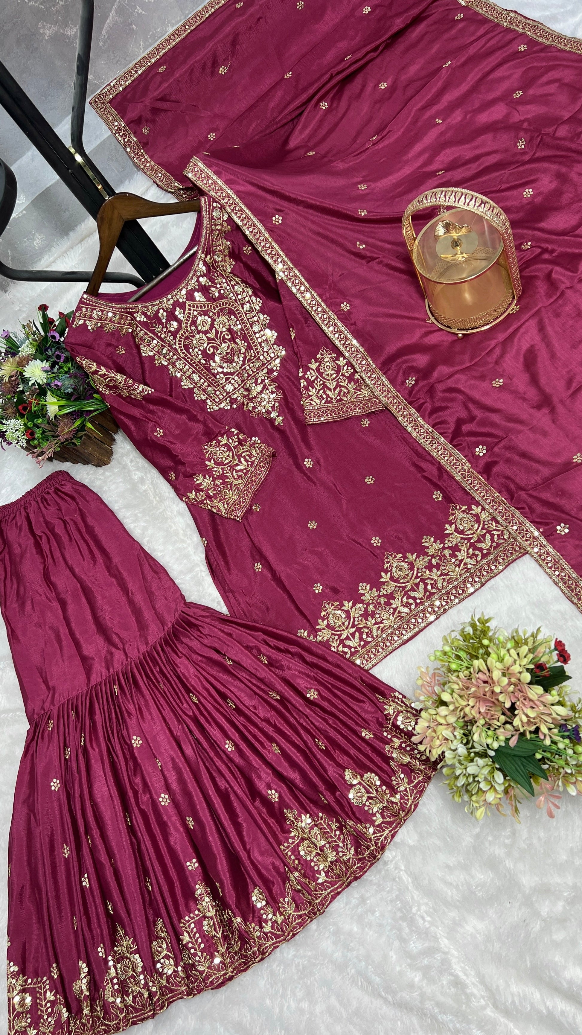 Fancy Top-Sharara And Dupatta With Embroidery And Sequence Work
