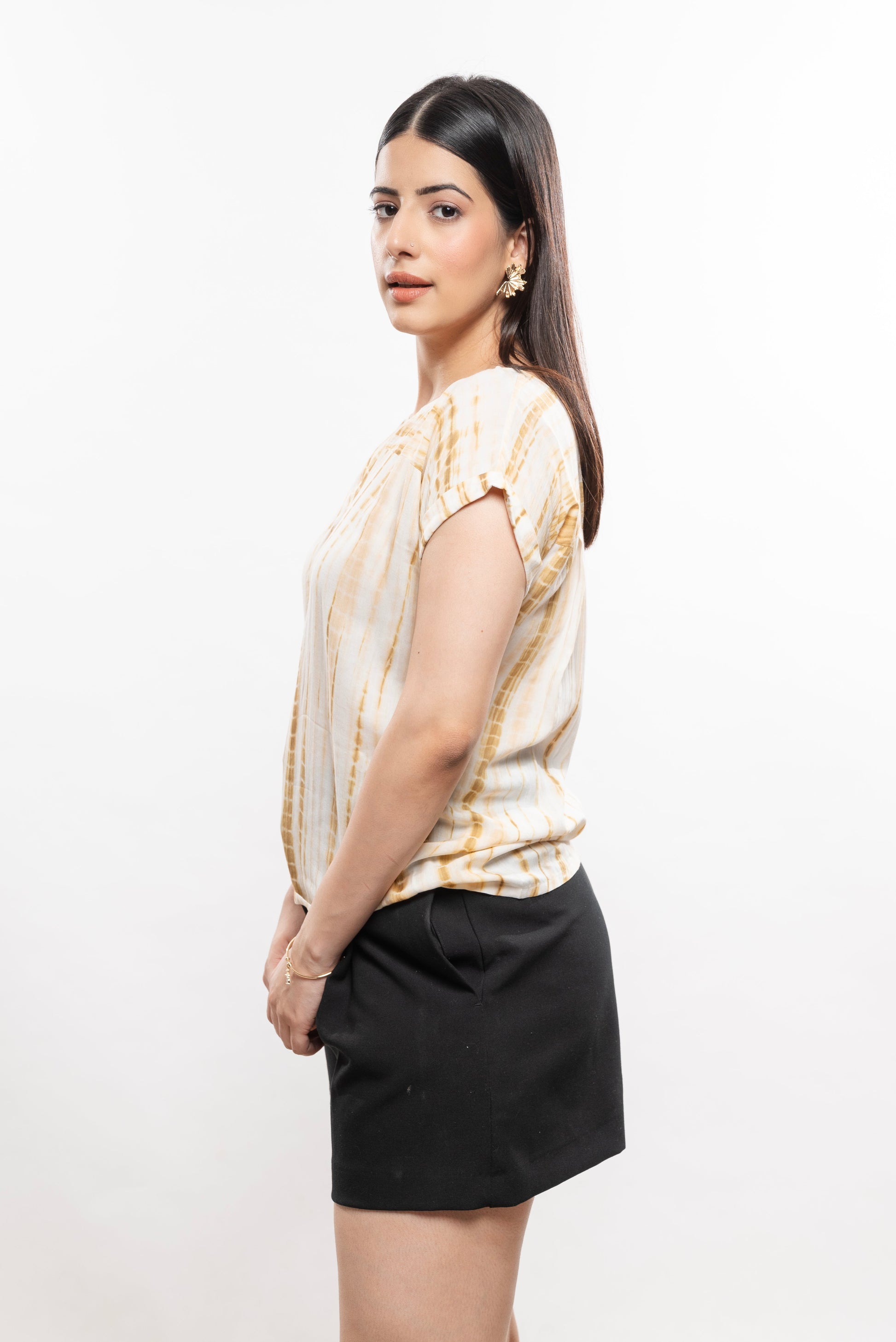 Uplift your style with this round neck top featuring extended sleeves and a unique cut and sew design. Made from soft modal fabric with a fashionable tie-dye print in rich brown, it's perfect for any occasion.