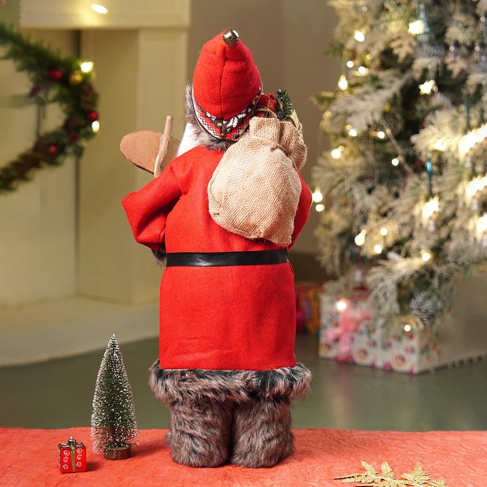 - Exclusive Design: This delightful Santa, dressed in a maroon coat with grey faux-fur trims and knit detailing at the bottom, along with a red hat featuring a knit-patterned rim, brings a warm and rustic Christmas charm to your décor. With his cheerful smile, golden glasses, and long fluffy white beard, he radiates classic holiday joy, making him a standout addition to any festive setup.