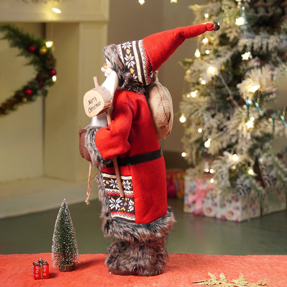 - Detailing: Designed with rich knit textures and plush faux fur, Santa carries a sack filled with festive greenery and gifts, while holding a wooden “Merry Christmas” sign in his other hand, adding a delightful touch to your holiday décor.