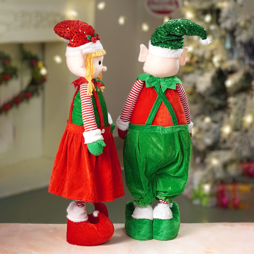 - Extendable Legs Feature: Both elves come with extendable legs, allowing you to gently pull them to increase their height. This fun, interactive feature makes them even more entertaining and lets you adjust their height to suit different décor spaces.