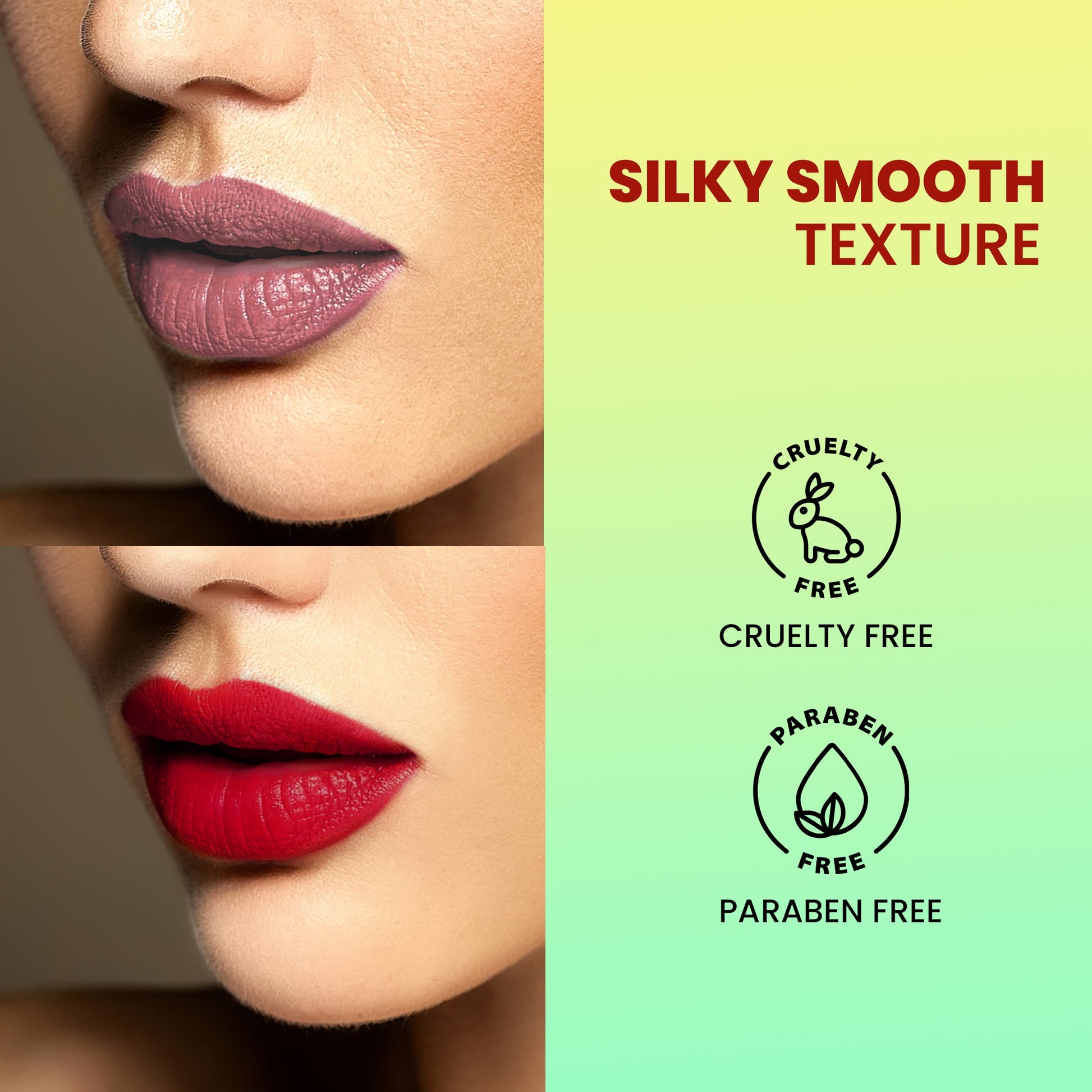 Our monochromatic-based Neyah’s Mid Matte Lipstick shades deliver a splash of creamy colour that settles to a stunning matte finish in strong matte hues. Given its longevity, low weight, and beautifully creamy texture, it should come as no surprise that this delicately fragrant formulation is a favourite among cosmetics enthusiasts. Use this rich matte texture with colours for everyday wear and a highly pigmented finish to cover your lips. This lip cream is light on the lips but bursting with colour, making it the perfect matte lipstick alternative!