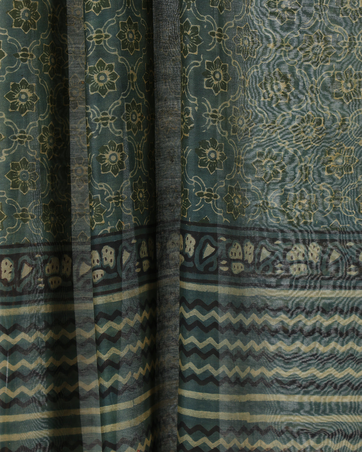 Chanderi Silk dupatta in dream teal blue shade with Mughal floral detailing with its sheer texture, feeling like fine luxury.