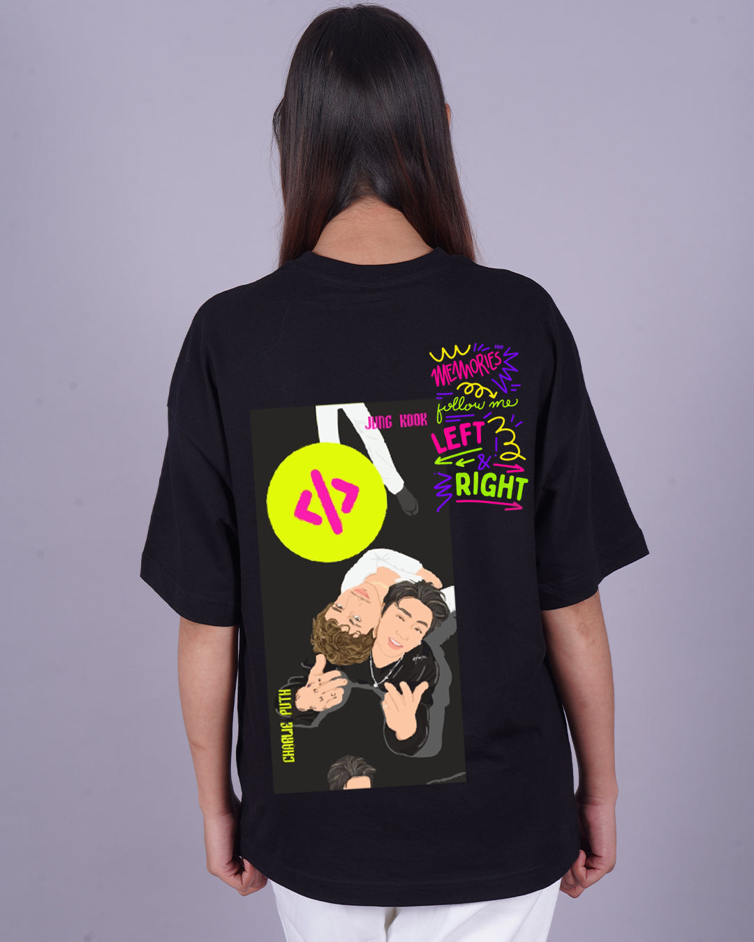 Pack of 2 Women's Oversized T-Shirts - Left & Right and Attention