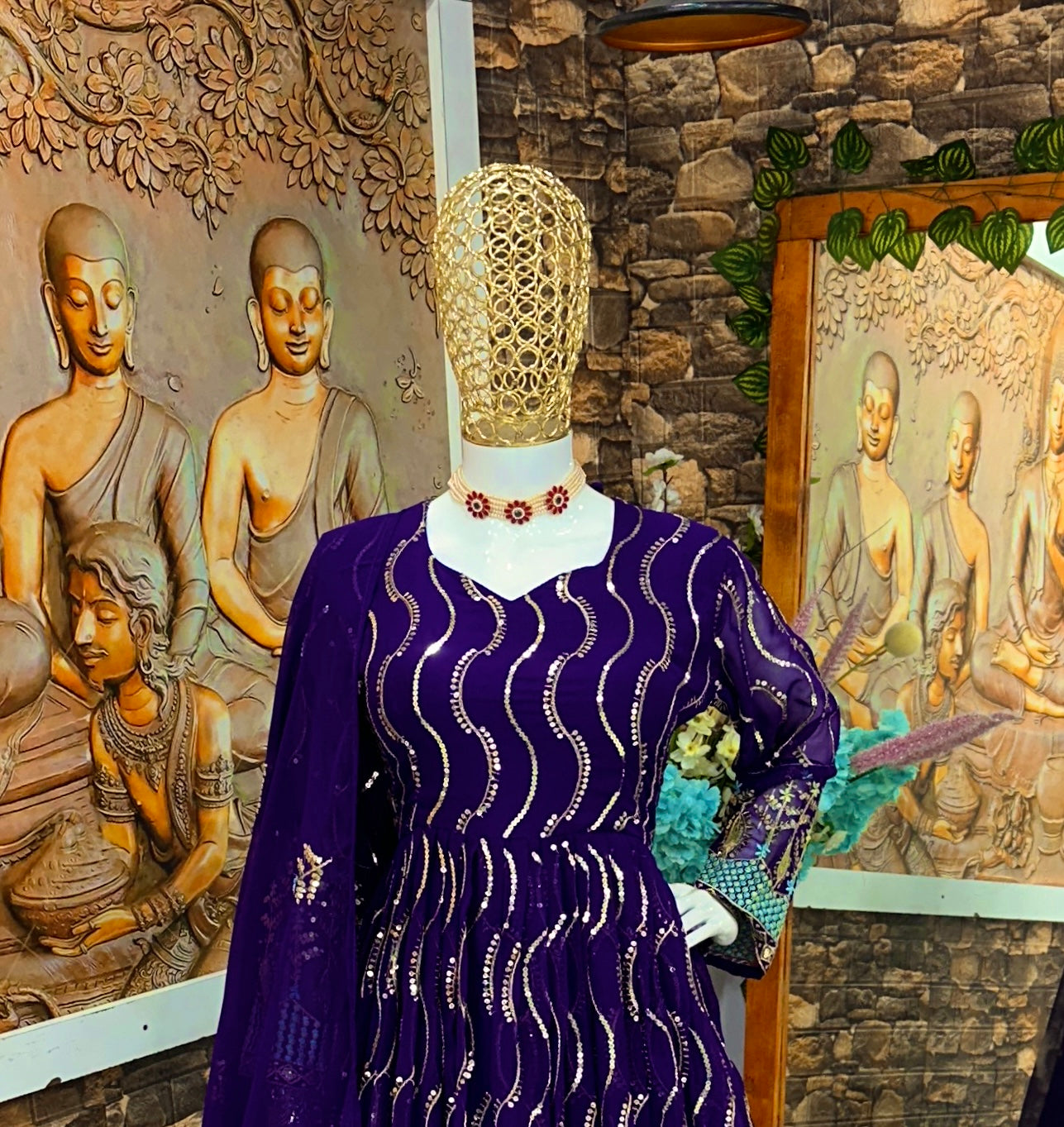 *GOWN FABRIC* :HAVY FOUX GOARGATE WITH HAVY EMBROIDERY 5MM SIQVAS WORK AND FULL SLIVE