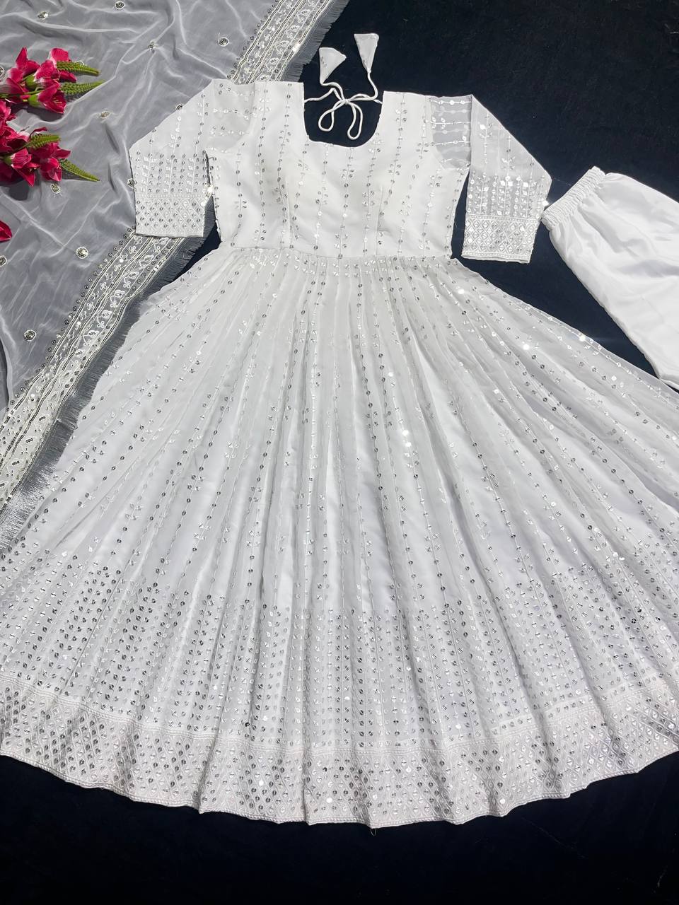 *GOWN WORK* :-_ SEQUENCE 9MM, MULTI NEEDLE WORK, WITH EMBROIDERY WORK WITH FULL SLEEVES_