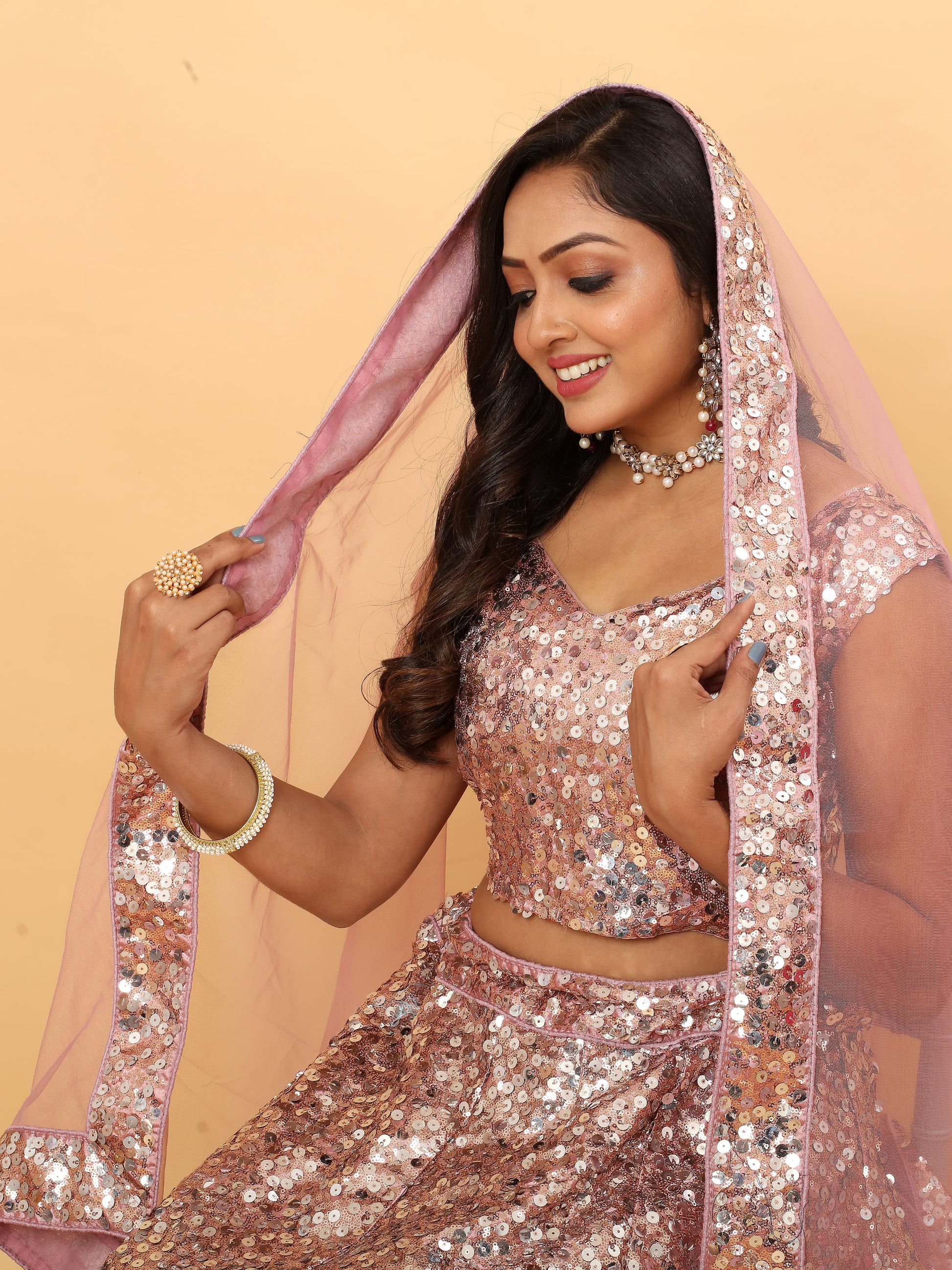 Lehenga : *Premium Malai Satin Silk Embellished With Beautiful Heavy Sequins Work 3mm +9mm All Over With Heavy Cancan With Double Inner Covering With Flair 3.8 MTR*( Semi Stitched Upto Xxl )