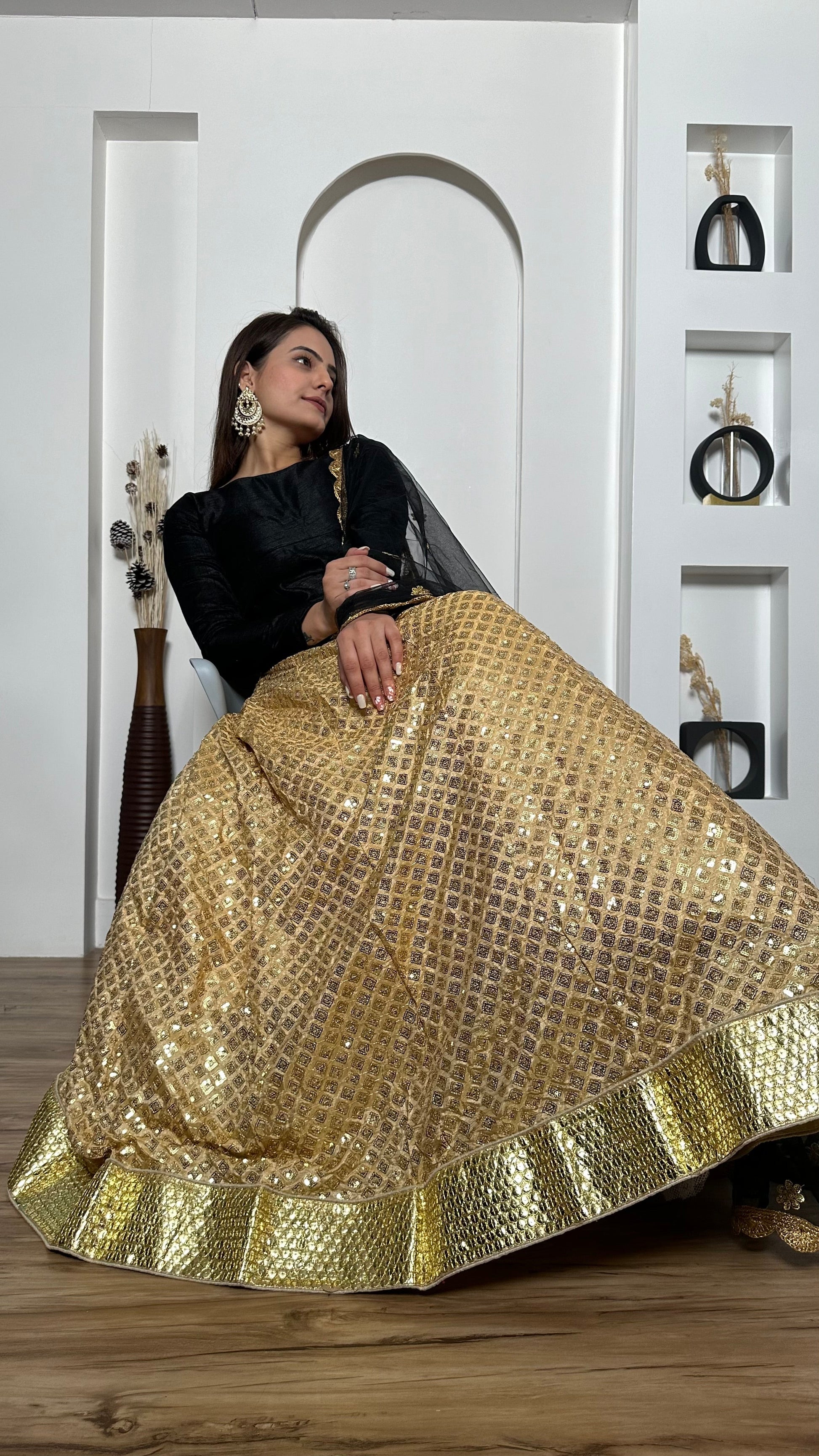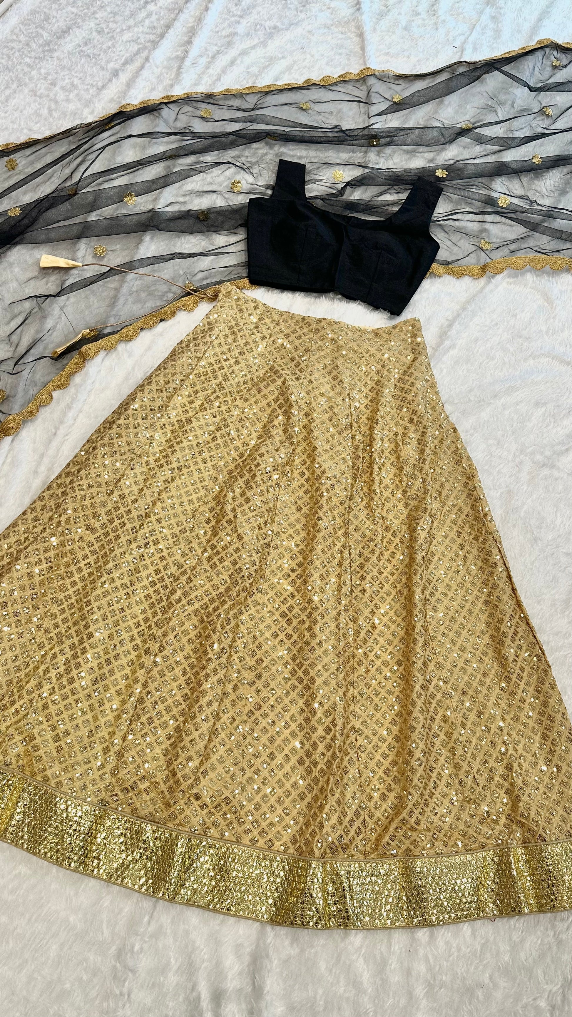 Kasturi silk lehenga with heavy sequins work & foil border work