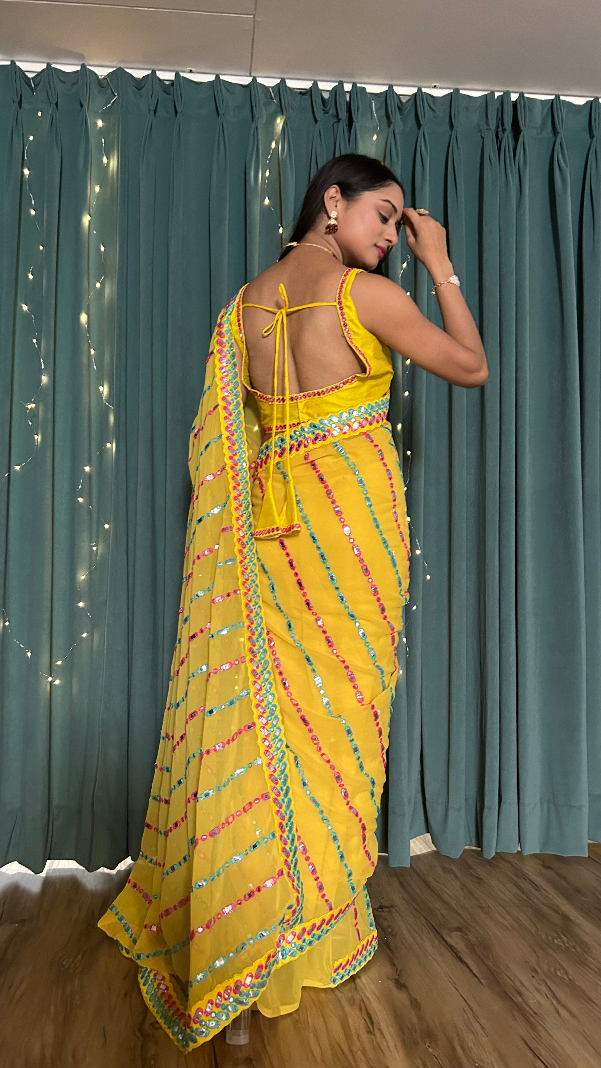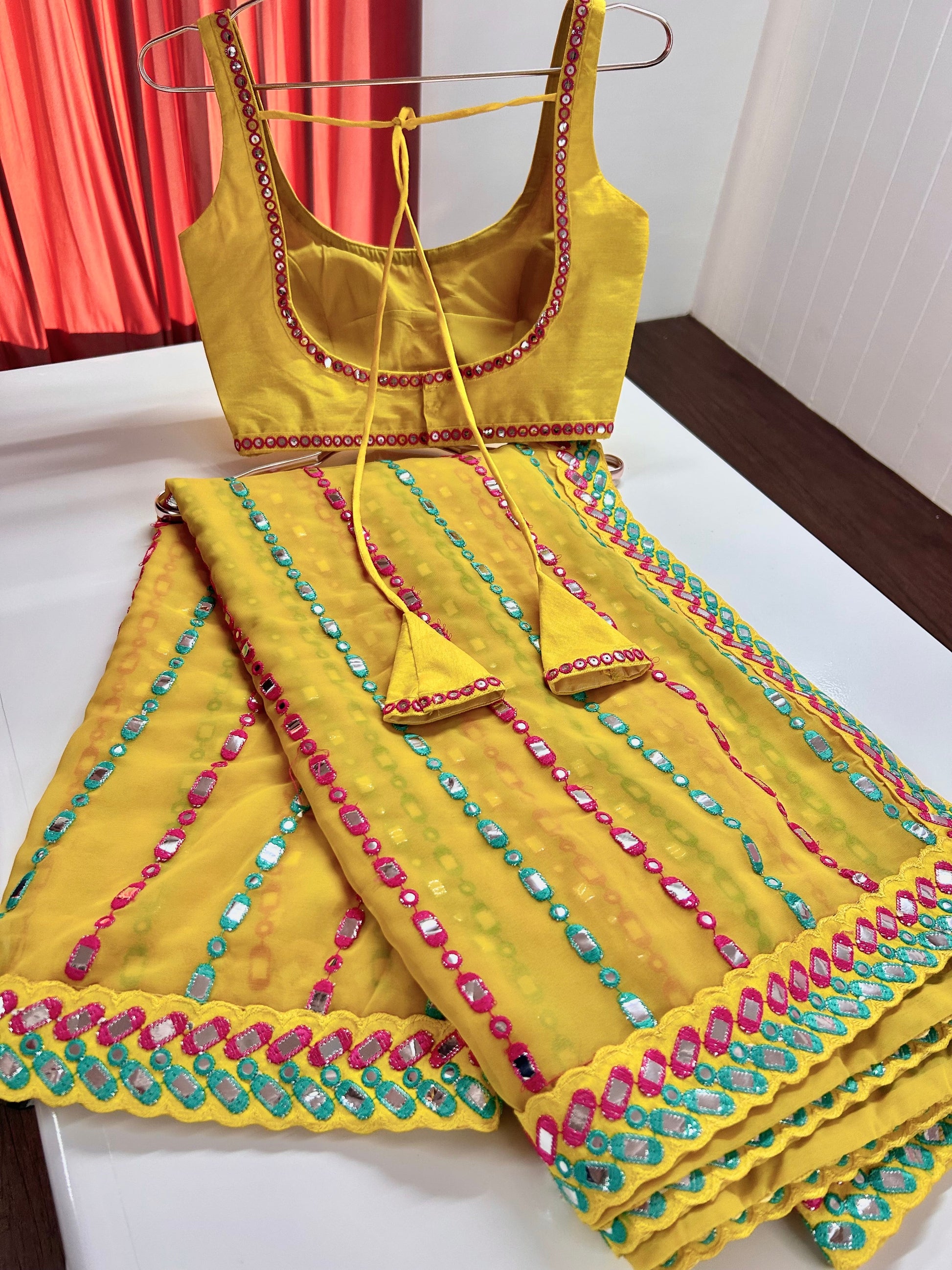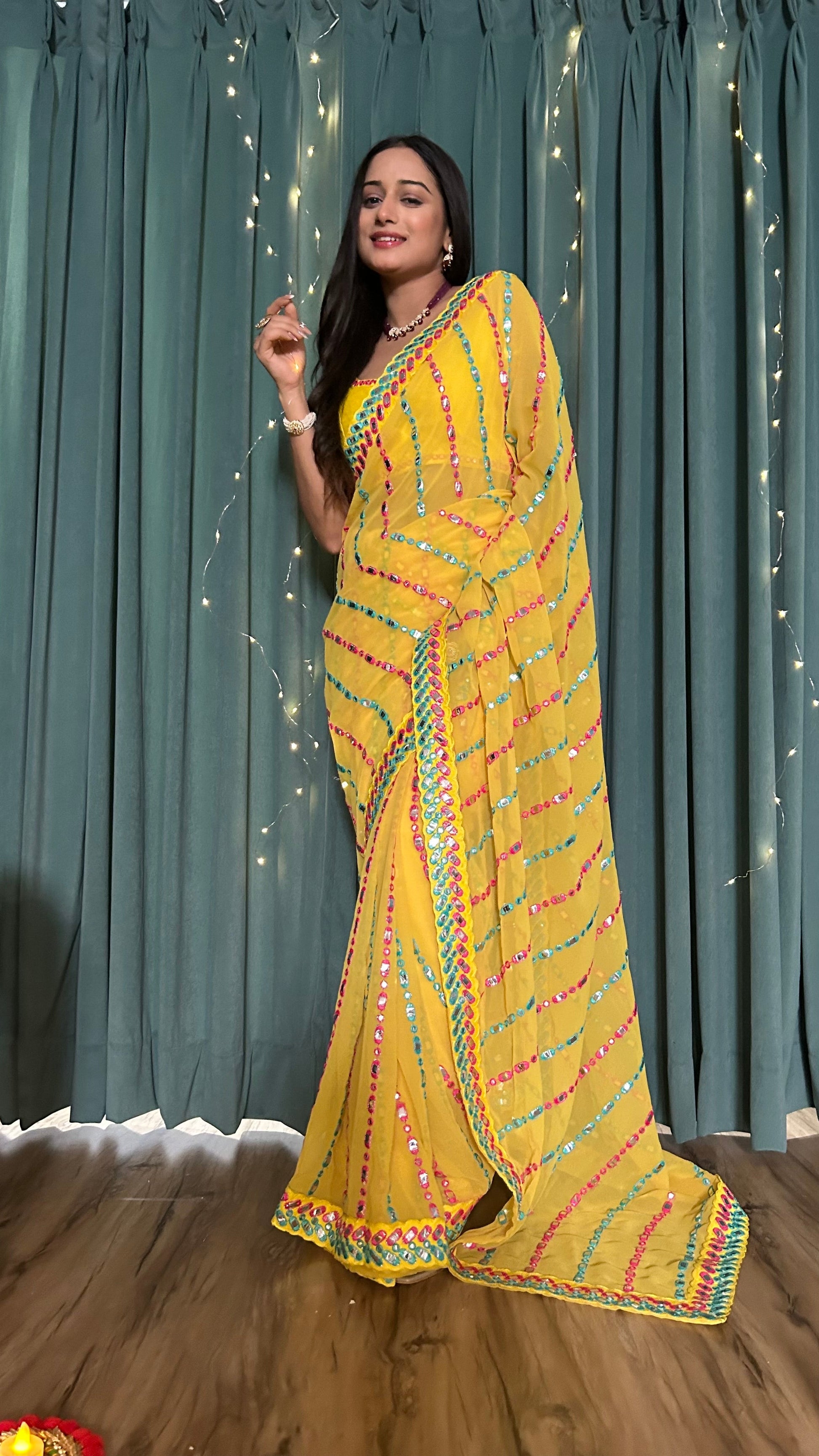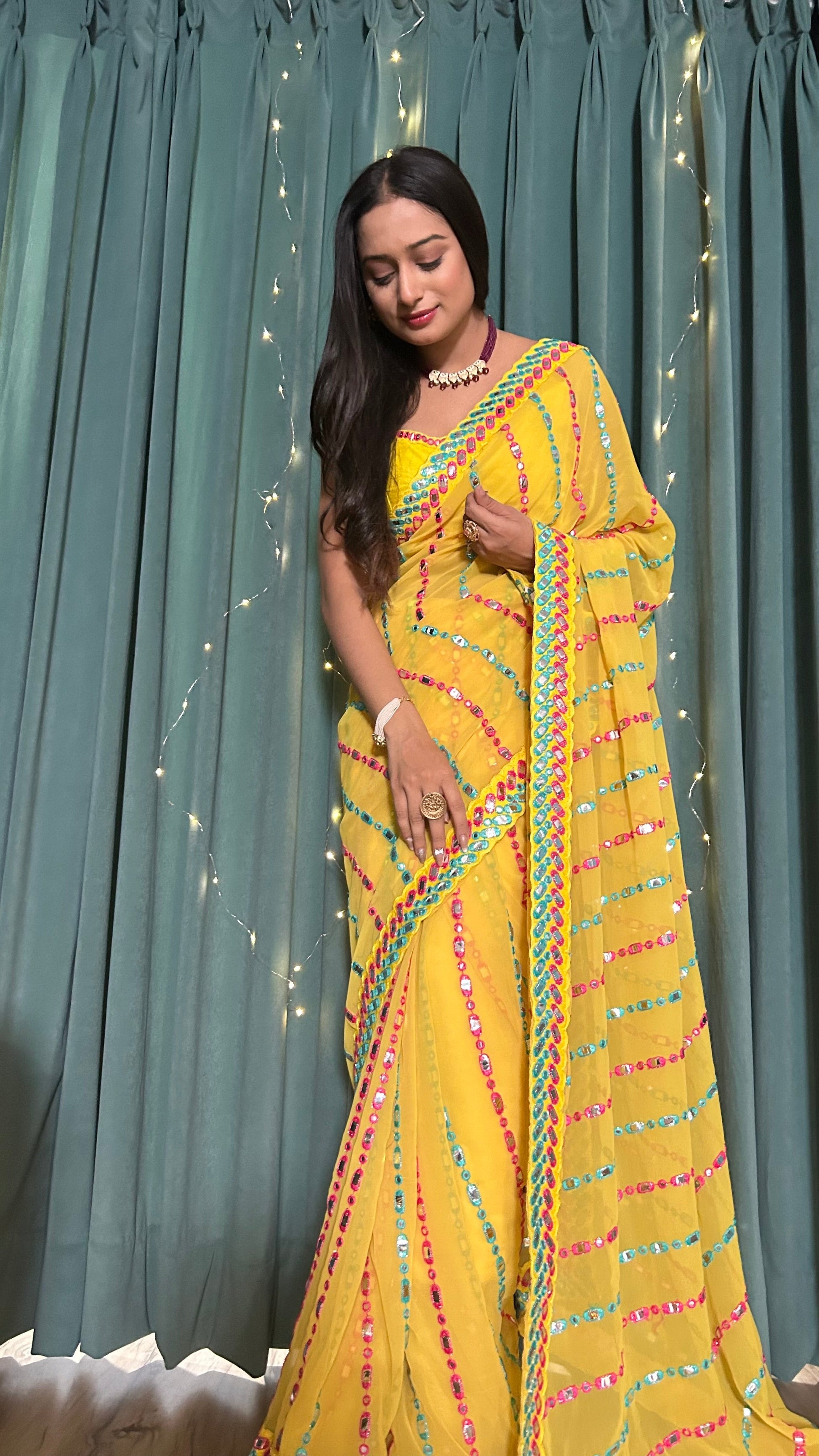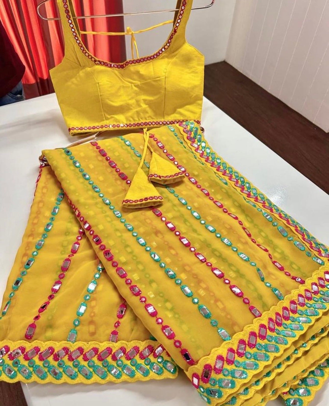 Party Wear Beautiful Saree With Thread & Paper Mirror Work